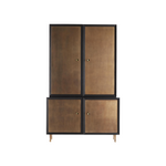 The Kilpatrick Tall Cabinet combines design heritage with modern elegance. Its luscious ebony-stained oak finish contrasts with burnished gold leaf accents, adding depth to a classic silhouette. Details such as cast brass hardware, European hinges, and adjustable foot levelers elevate both style and functionality, making this cabinet a refined addition to any space.