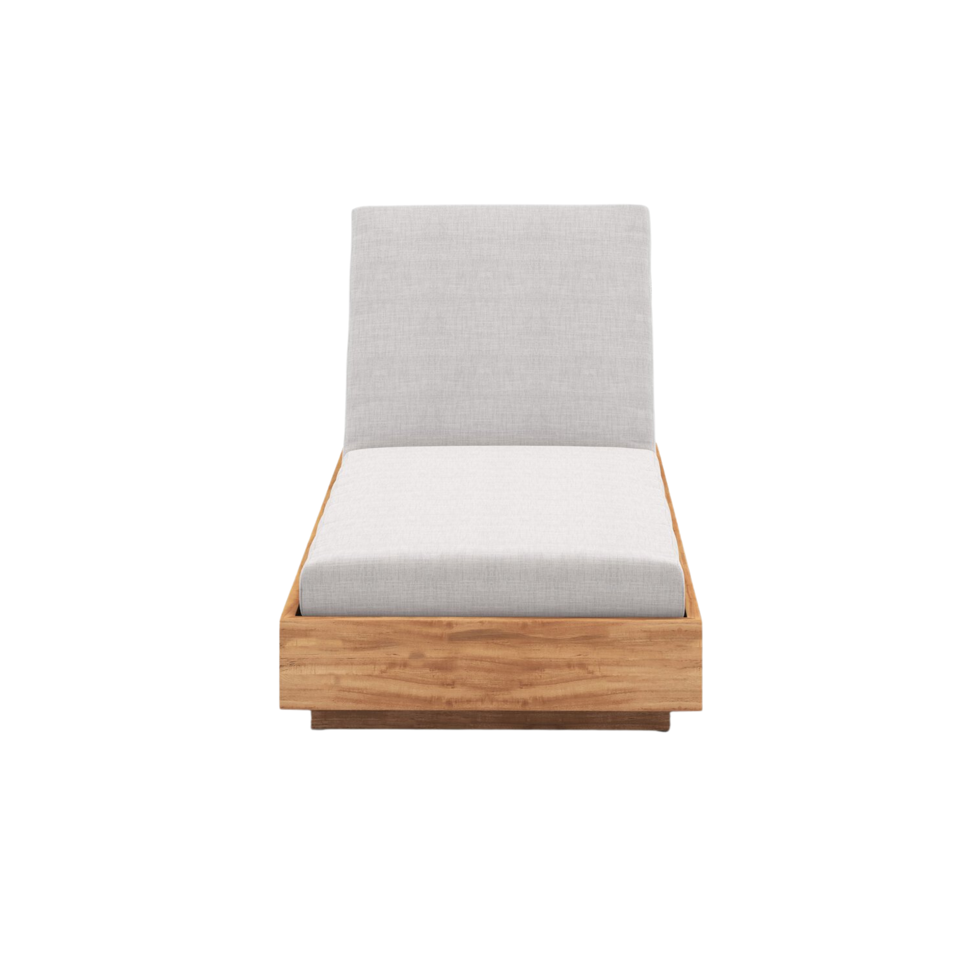 A slim, stylish profile prime for lounging. Boxed base of FSC-certified teak frames durable, outdoor-friendly cushioning in a stone grey. Adjustable back for comfort and ease. Cover or store indoors during inclement weather and when not in use.