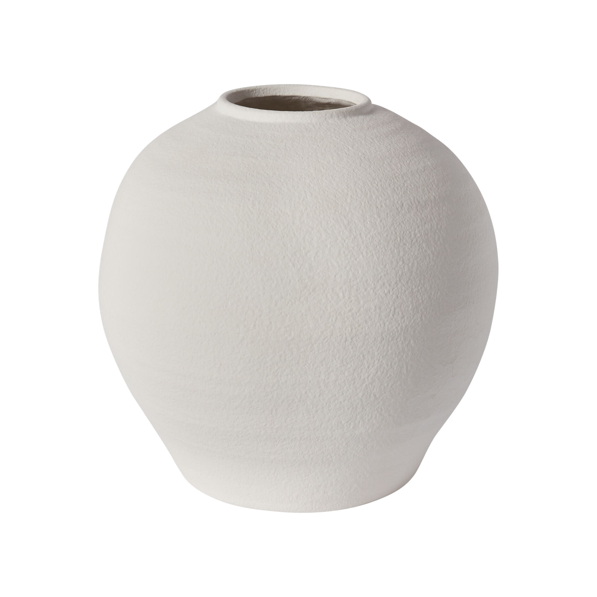The Konos Vase is a round bellied cement vase in bright textural white. Its size and shape provide a perfect canvas for a large statement arrangement or a simple tropical stem.