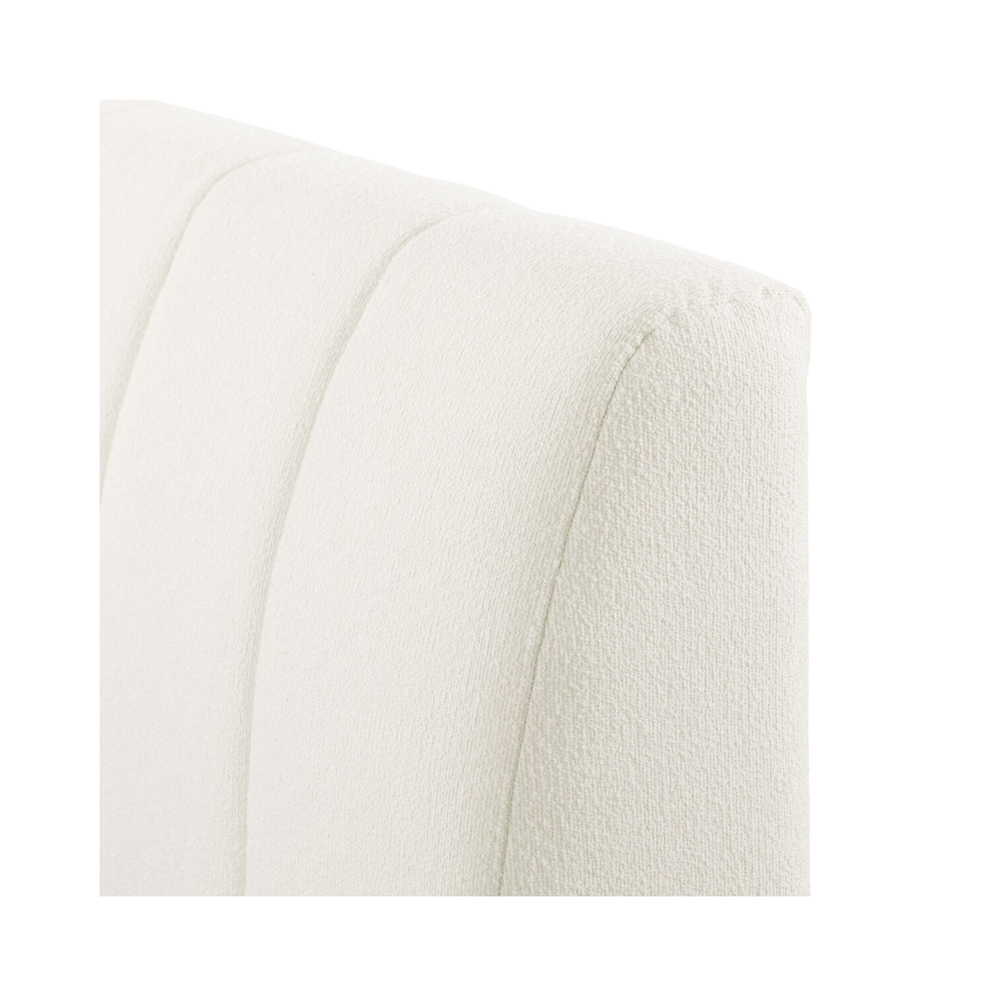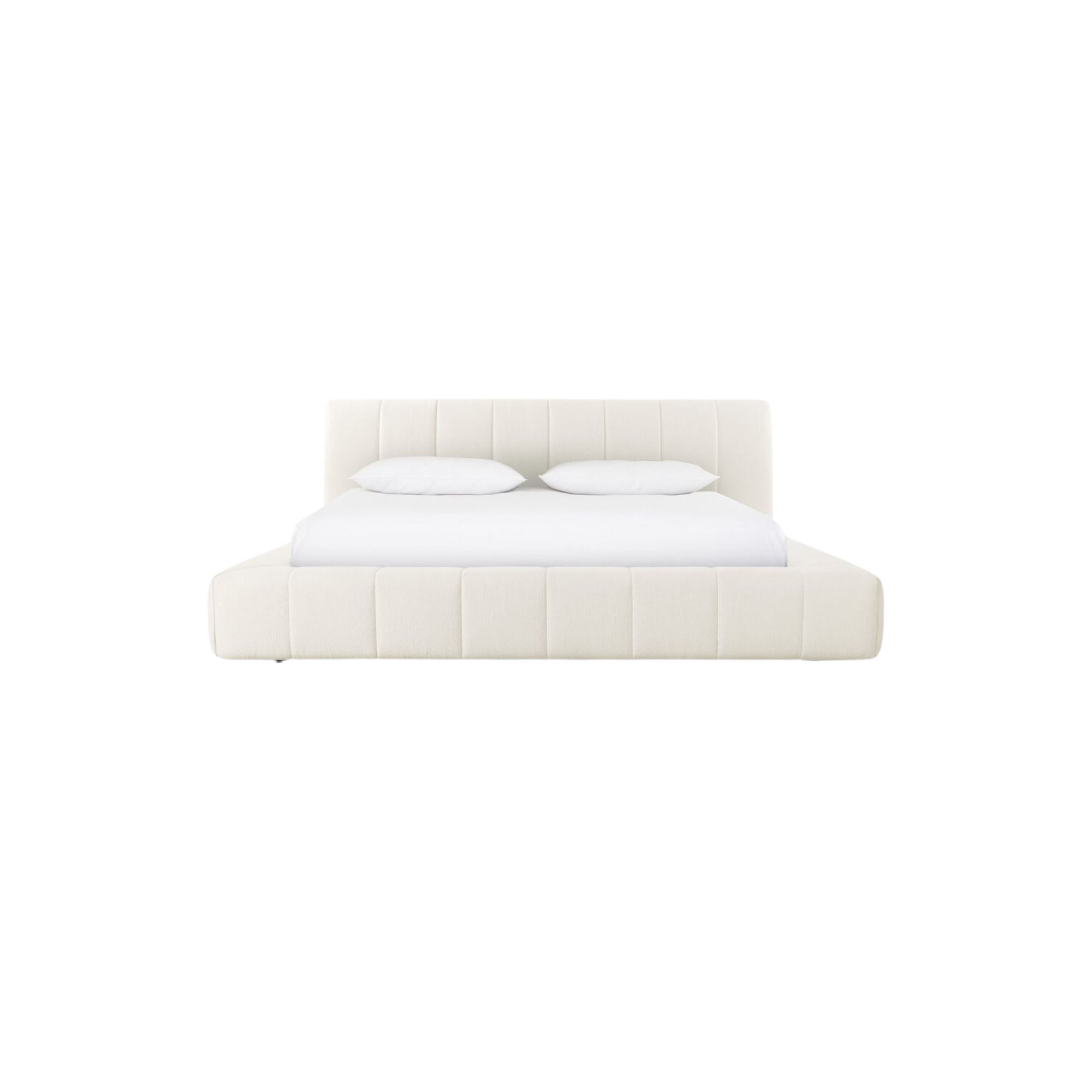 Wide, vertical channeling and low styling speak to the modish Italian influence of this softly textured bed upholstered in cream high-performance fabric. Performance fabrics are specially created to withstand spills, stains, high traffic and wear, ensuring long-term comfort and unmatched durability.