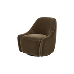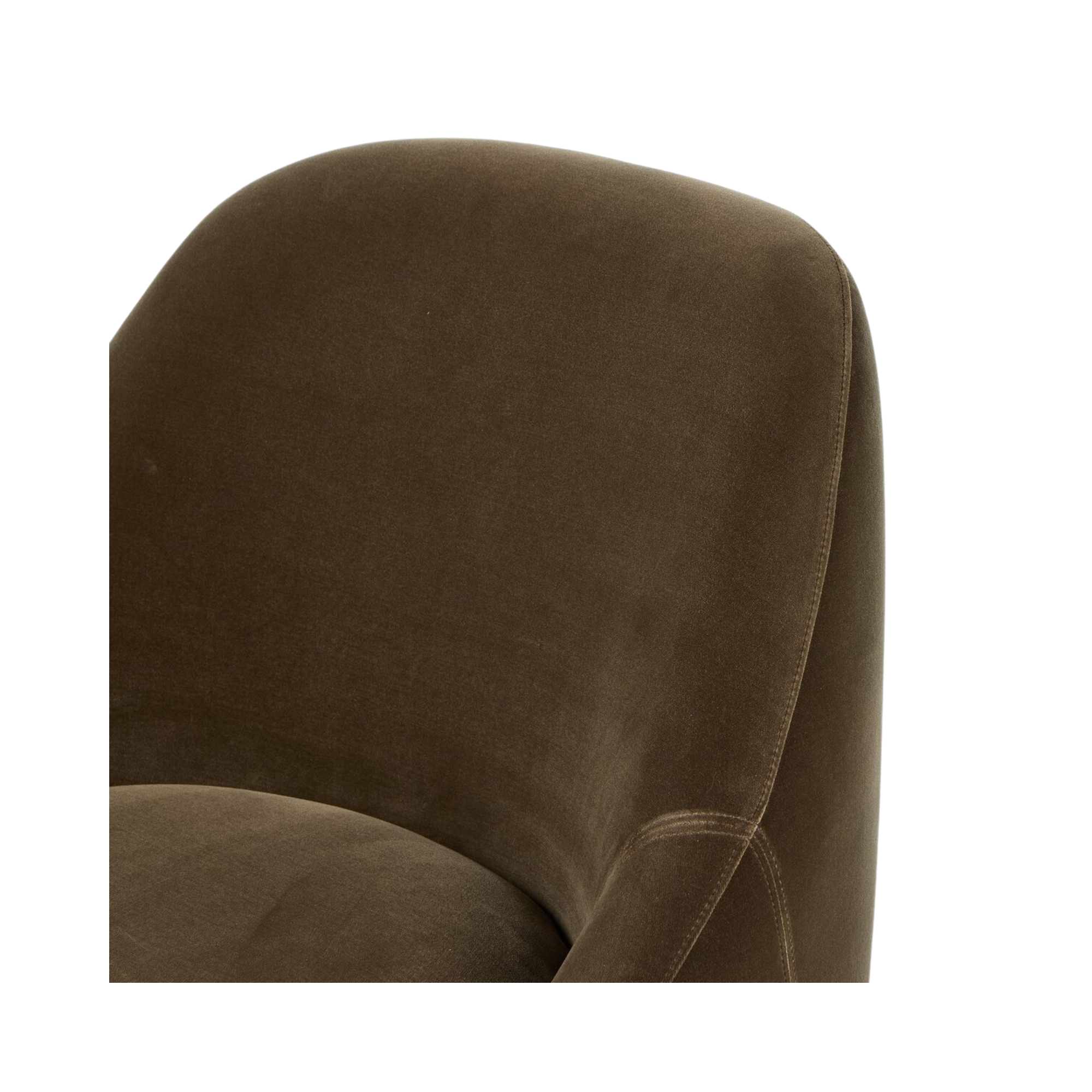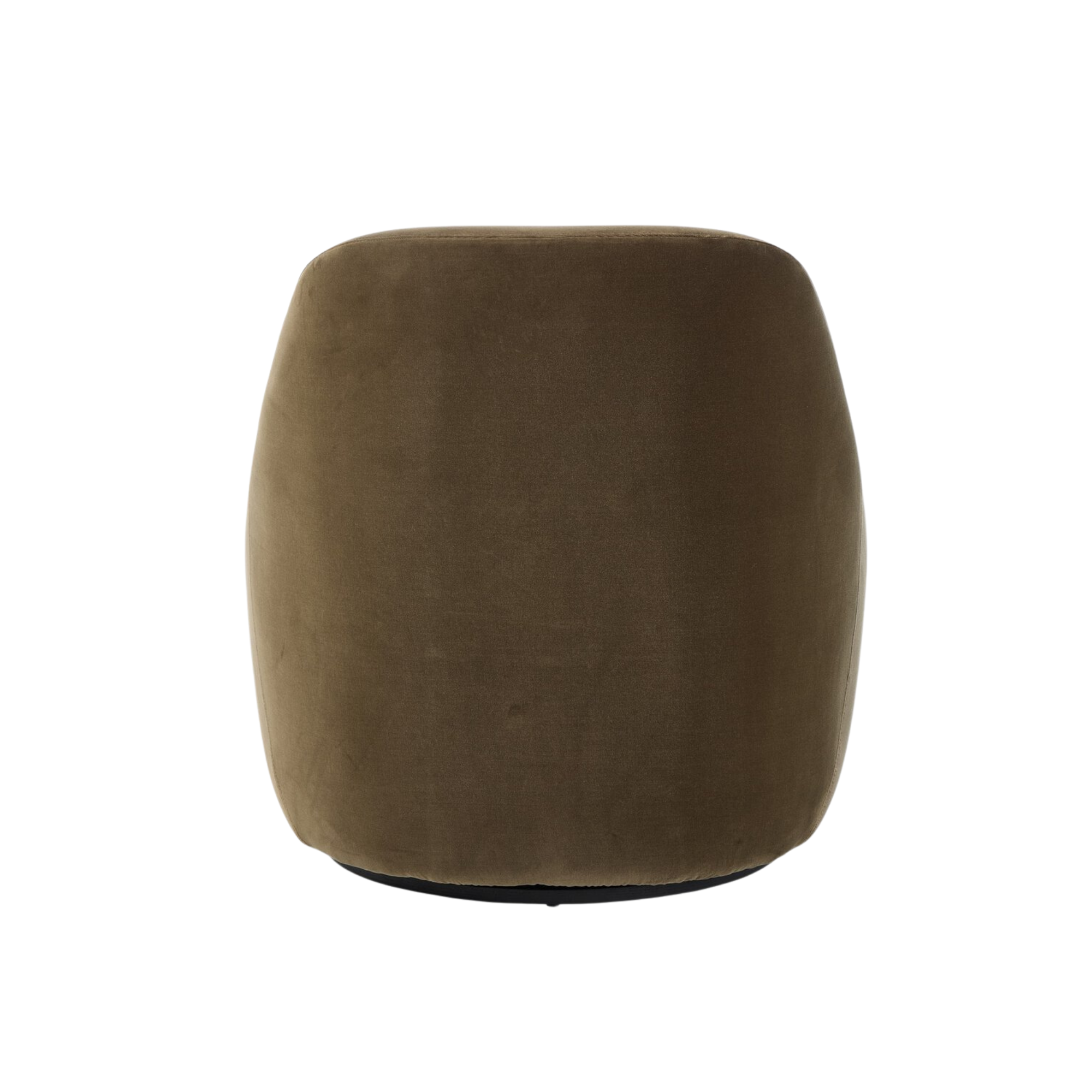 The Levi Swivel Chair combines curves with tailored Surrey Olive velvet upholstery for a luxurious feel. Its 360-degree swivel offers full-range movement, making it a stylish and versatile addition to any room. Enjoy comfort and elegance in one beautifully crafted piece.