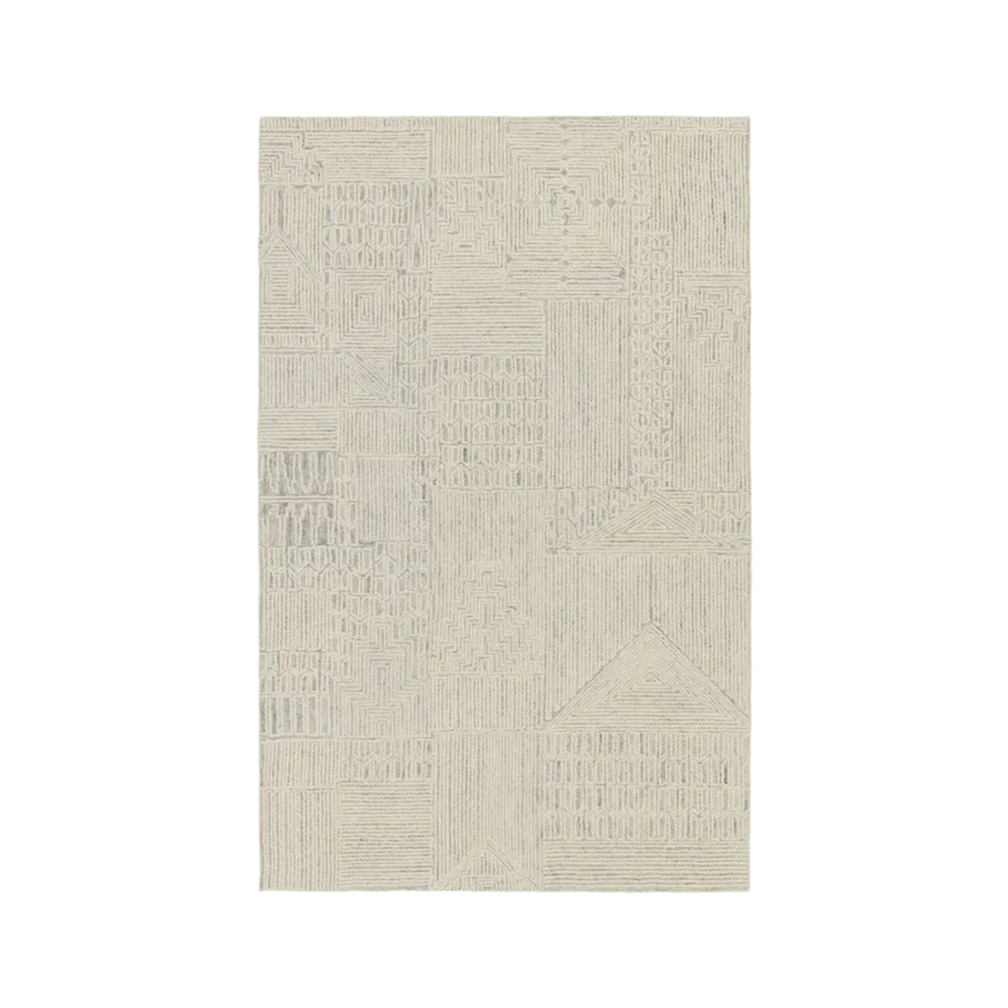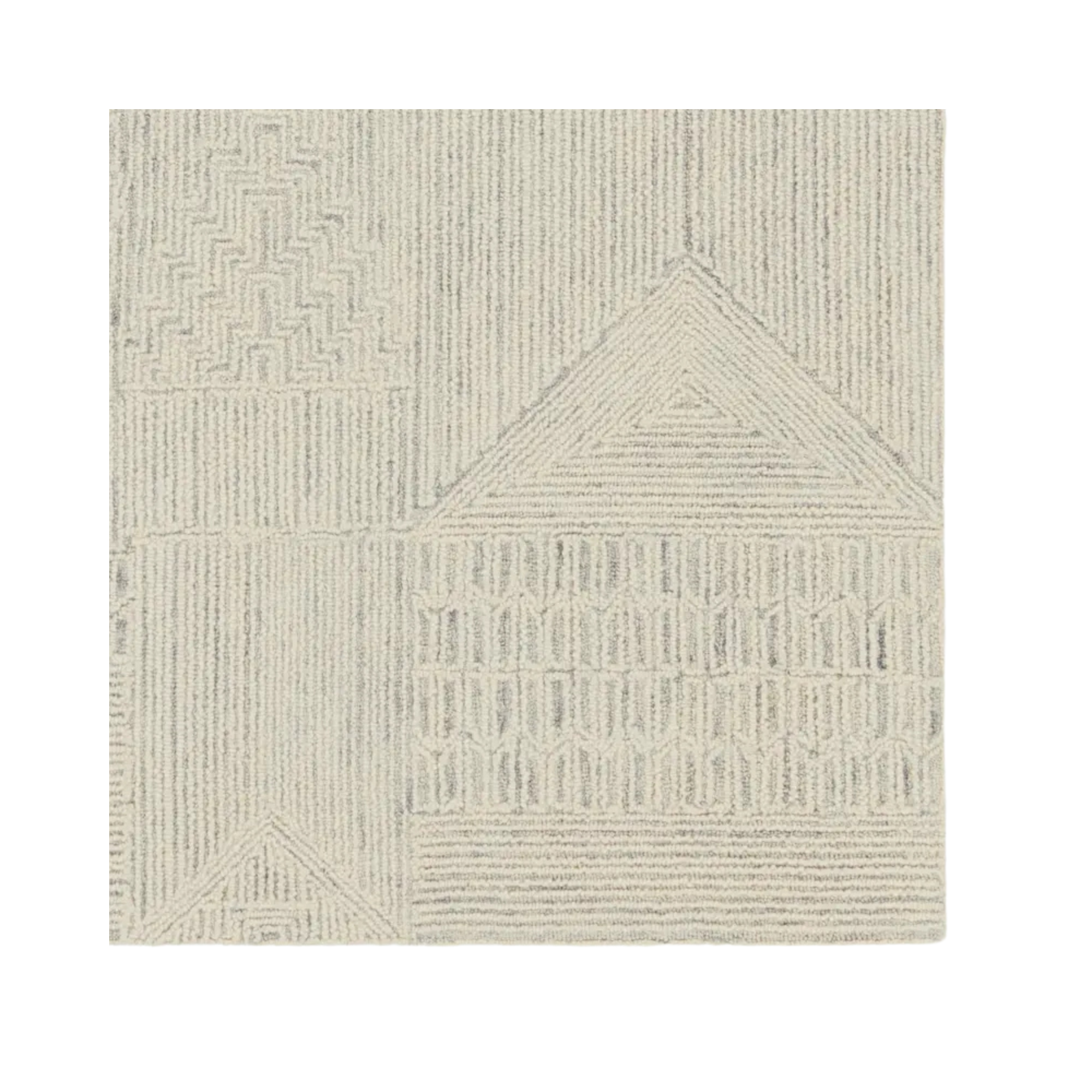 The stunning hand-tufted Lineage collection boasts intricate detailing and beautiful texture. A modern take on African and Moroccan motifs, these wool rugs lend pattern and interest with the versatility of neutral tones. The intricate Karim design features an eclectic mesh of stripes and geometric shapes that creates a stunning accent piece. Made of cream and light gray looped pile with varying height, this texture-rich area rug thrives in medium and low traffic areas of the home like bedrooms, formal living areas, and dining rooms.