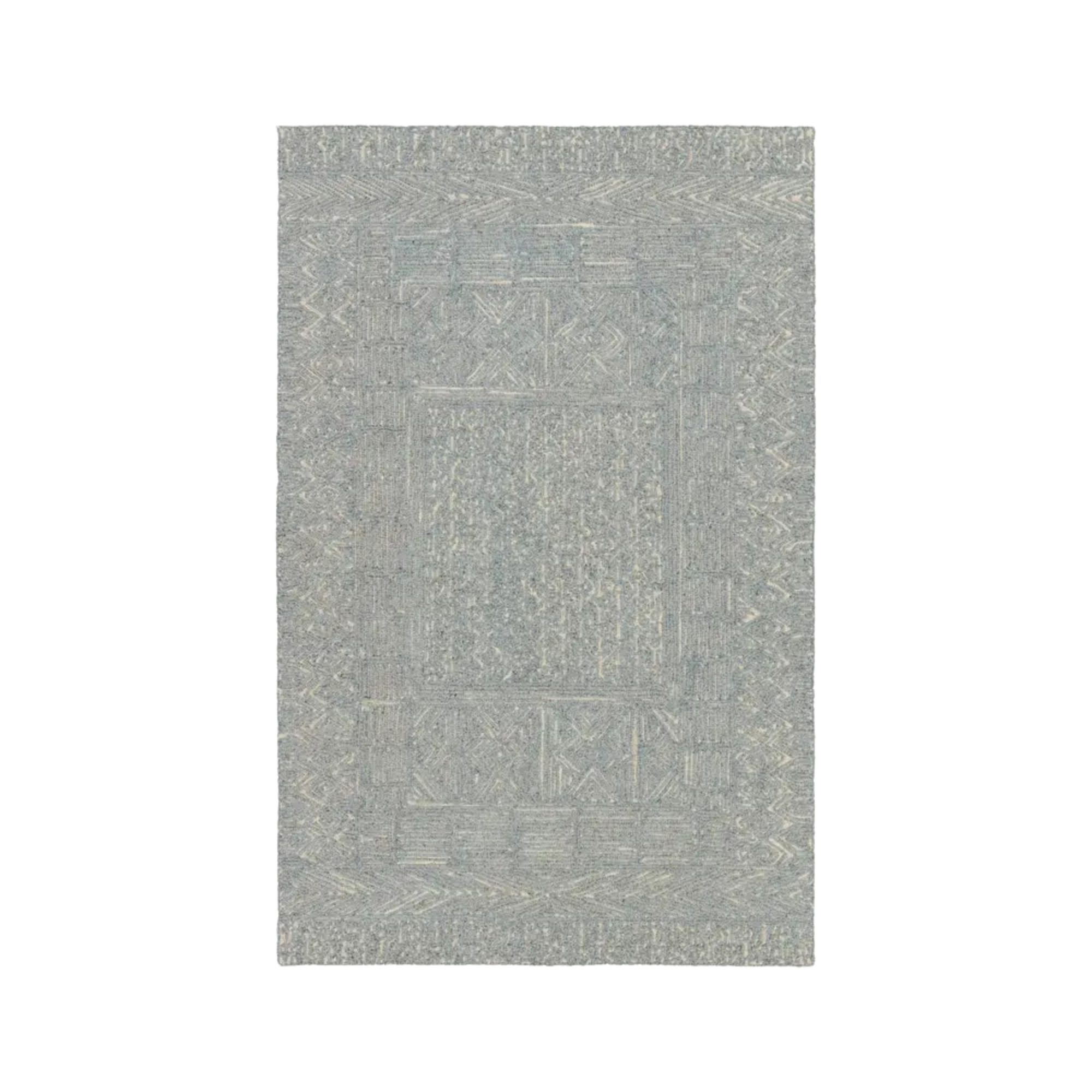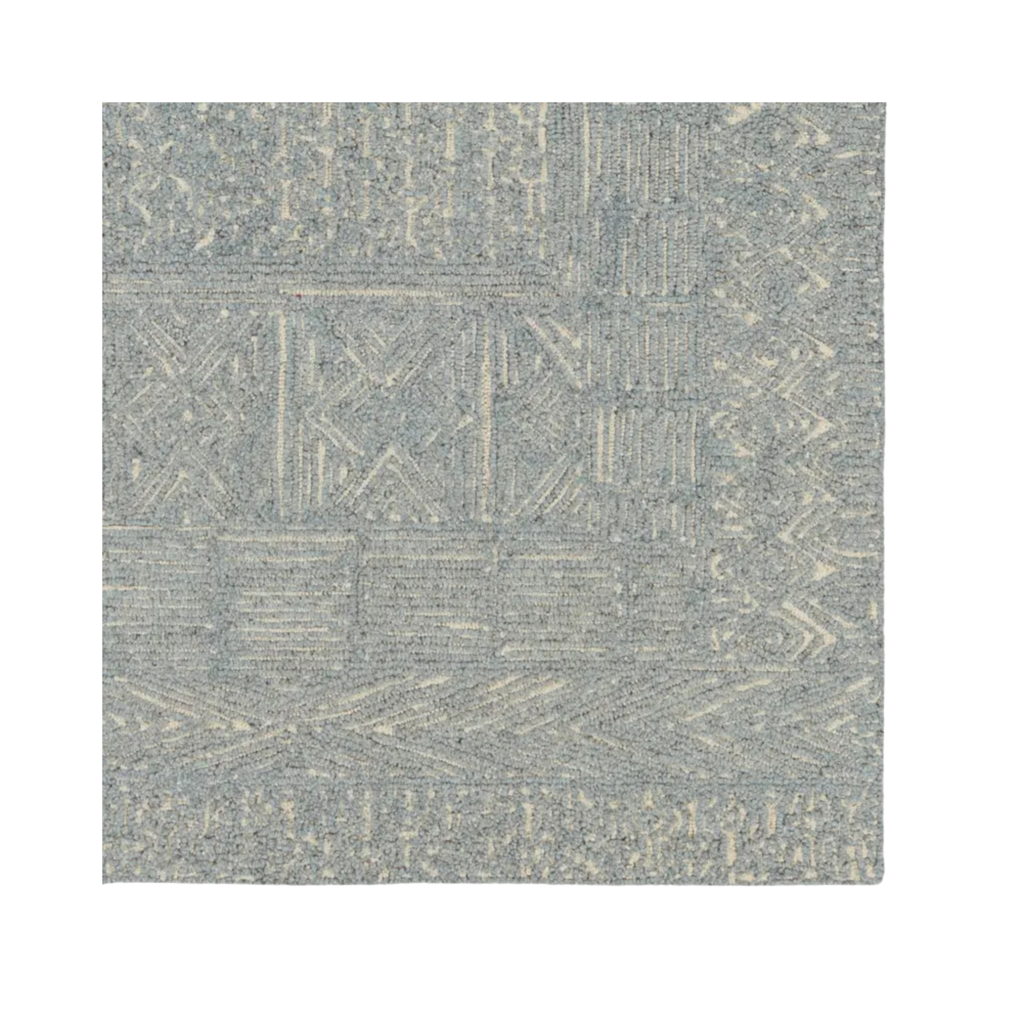 The stunning hand-tufted Lineage collection boasts intricate detailing and beautiful texture. A modern take on African and Moroccan motifs, these wool rugs lend pattern and interest with the versatility of neutral tones. The intricate Viatte design features an eclectic mesh of stripes and geometric shapes that creates a stunning accent piece. Made of blue and cream looped pile with varying height, this texture-rich area rug thrives in medium and low traffic areas of the home like bedrooms, formal living areas, and dining rooms.