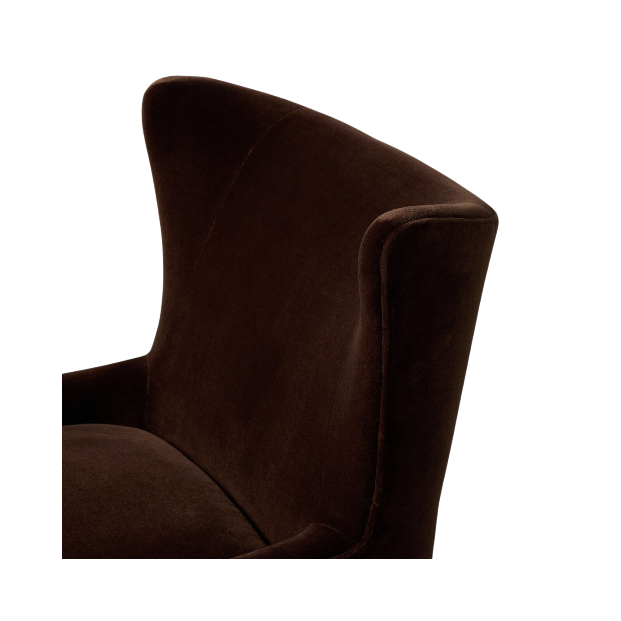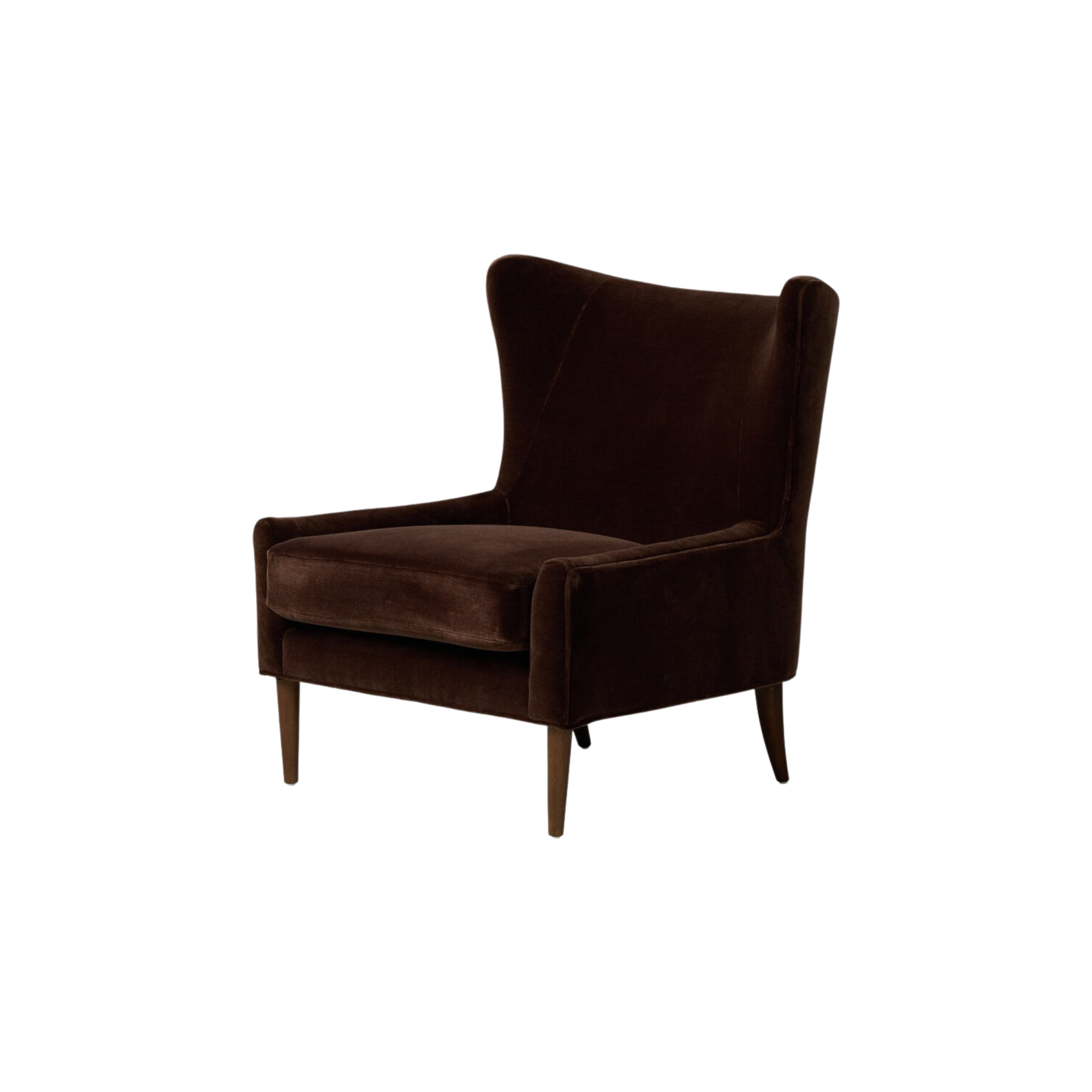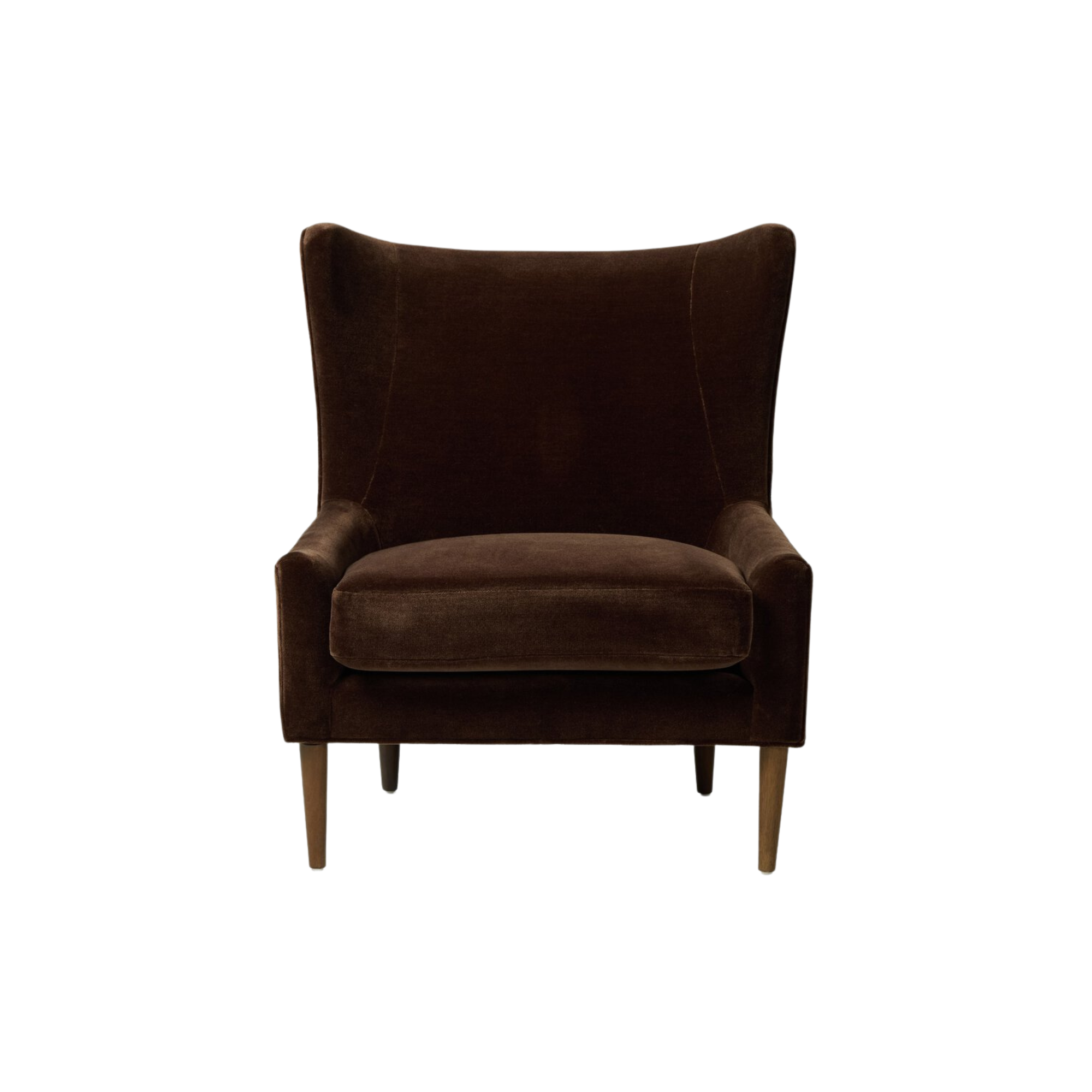 Warm and gently worn, tapered wood legs offer a strikingly modern, yet timelessly elegant, interpretation of the wing chair.