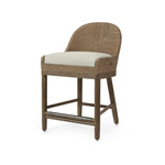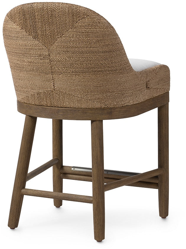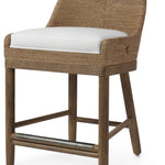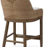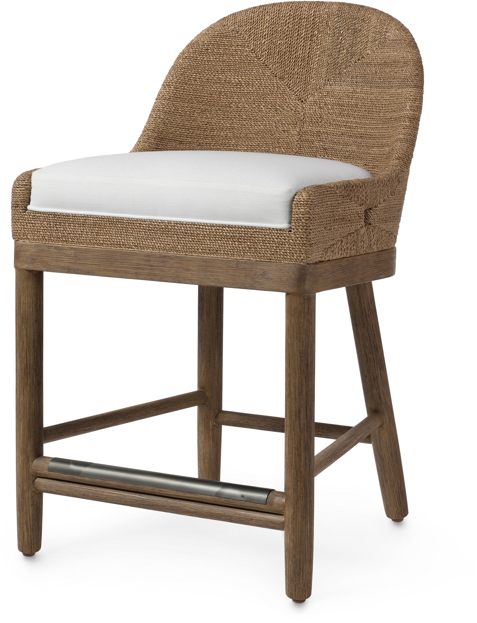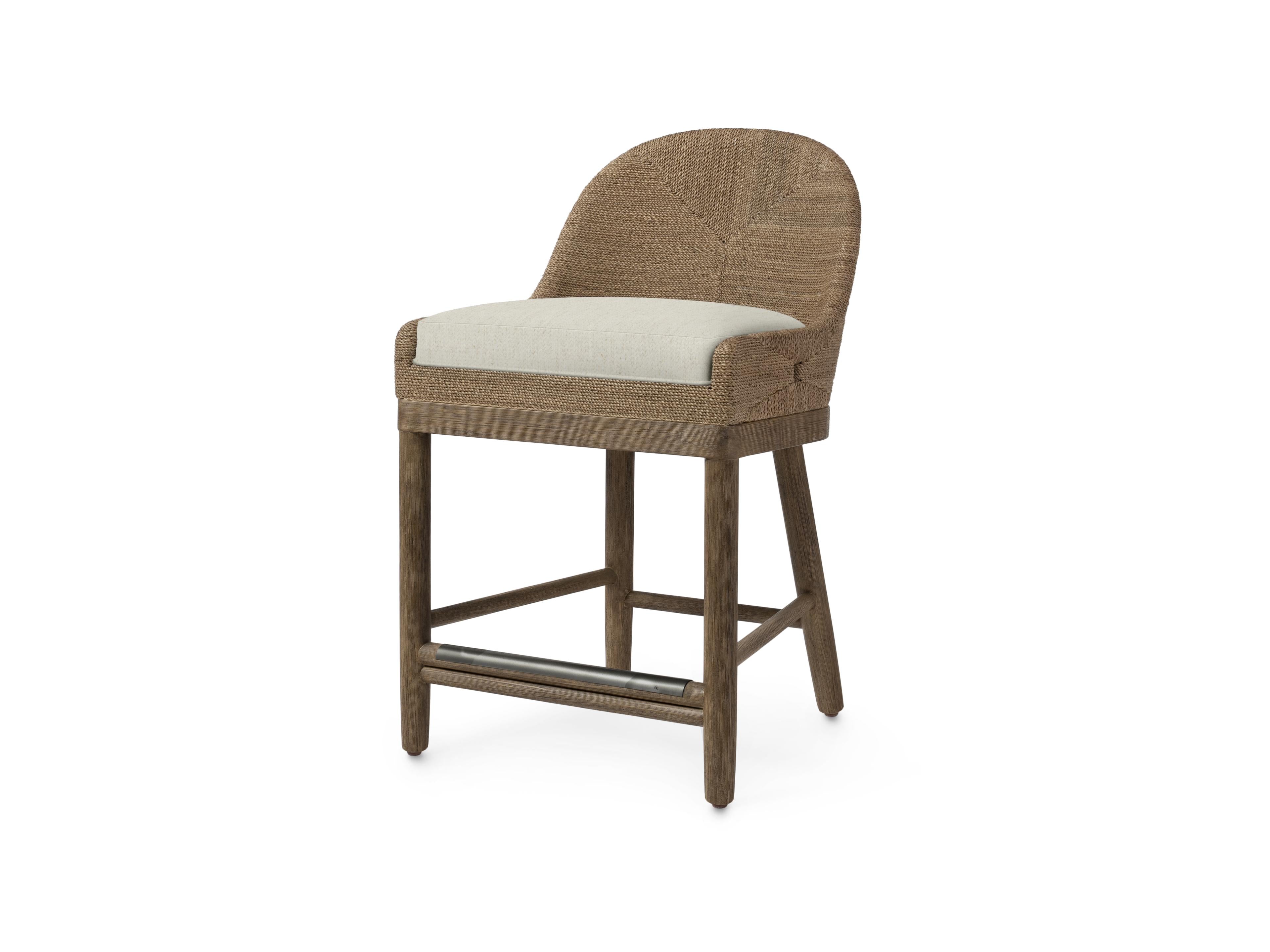 Crafted with a hardwood frame and hand-twisted natural lampakanay rope, this stool showcases a distinctive woven pattern on its double wall back and sides. The hand-distressed hardwood apron and legs add rustic charm, while the pewter-finished metal footrest offers sturdy comfort. Featuring a fixed upholstered seat, this 24" counter stool blends style and durability effortlessly. Perfectly coordinating with the Mesa collection, it’s available in multiple heights to suit your space and needs. Elevate your seating with this unique, handcrafted piece designed for lasting appeal.