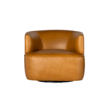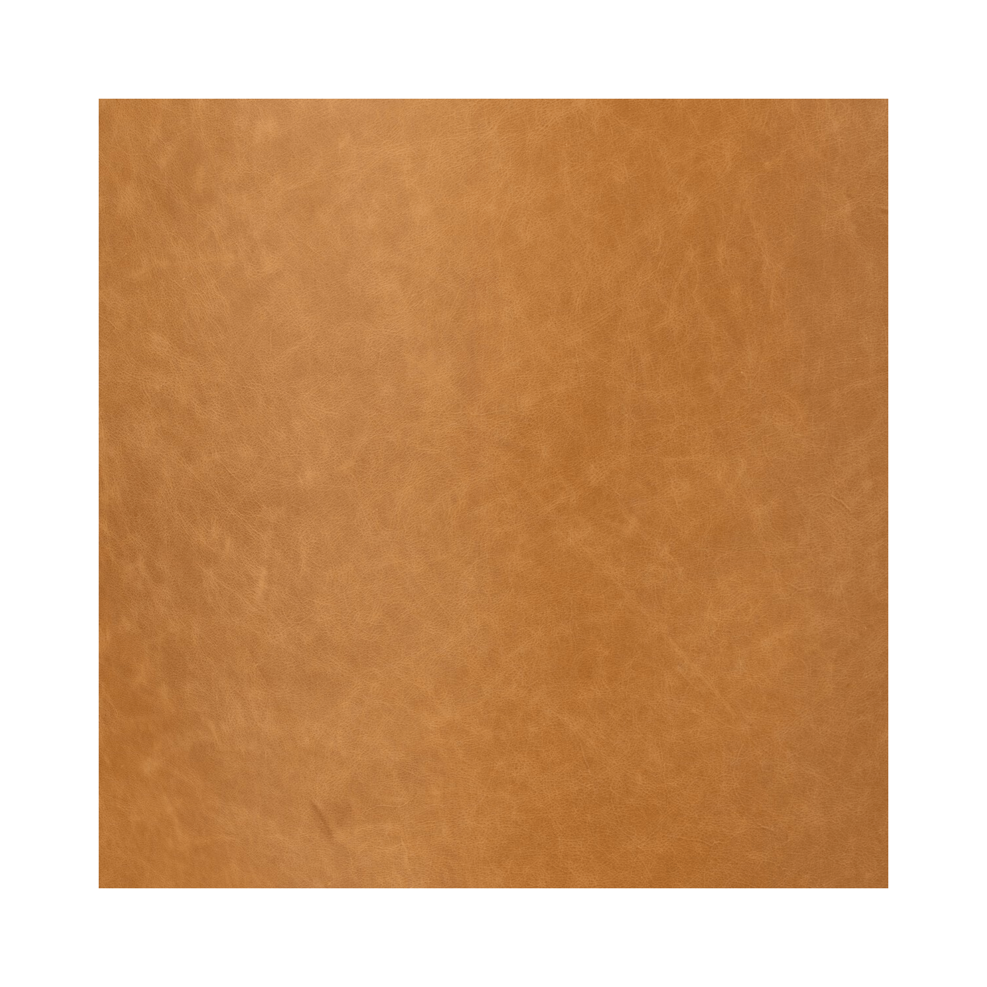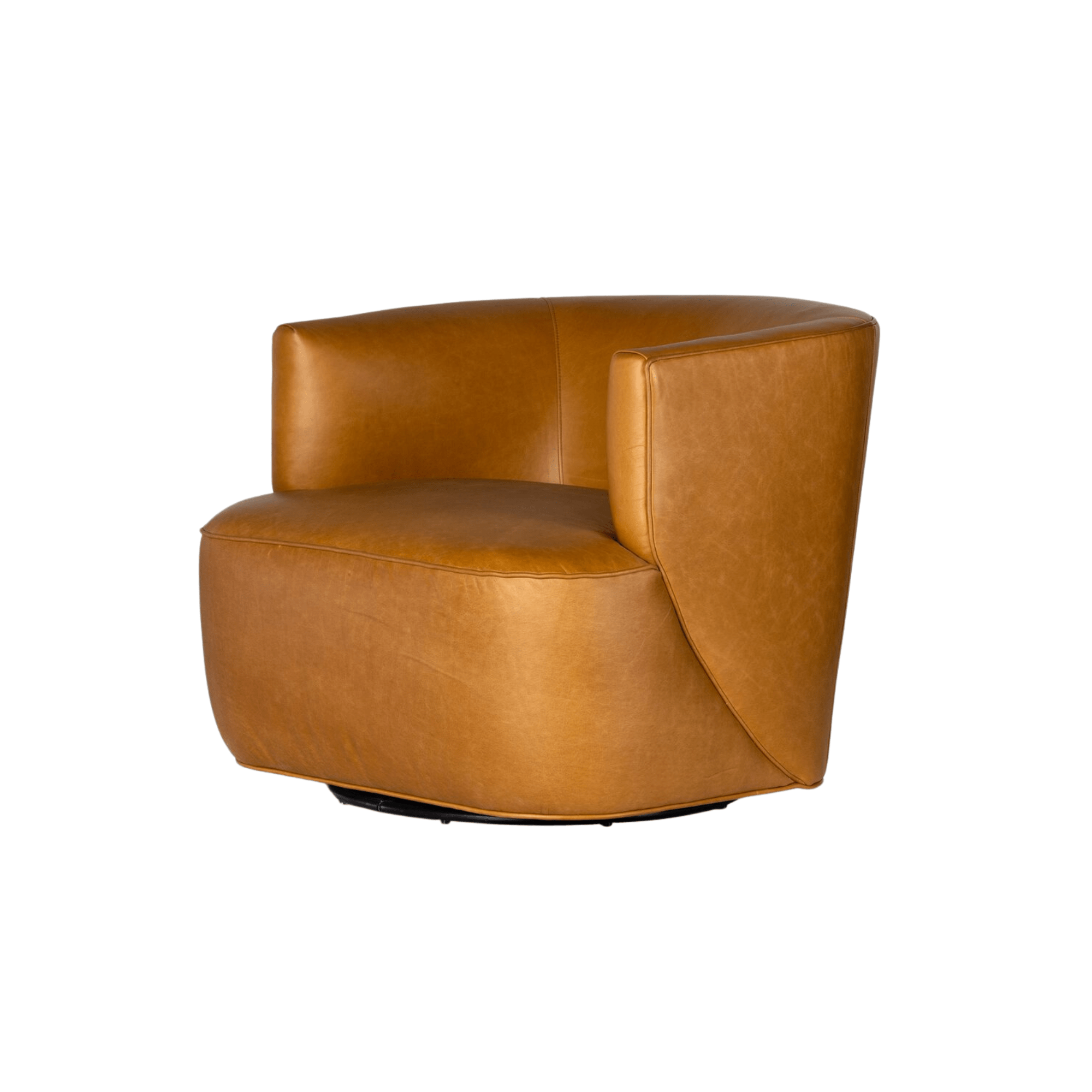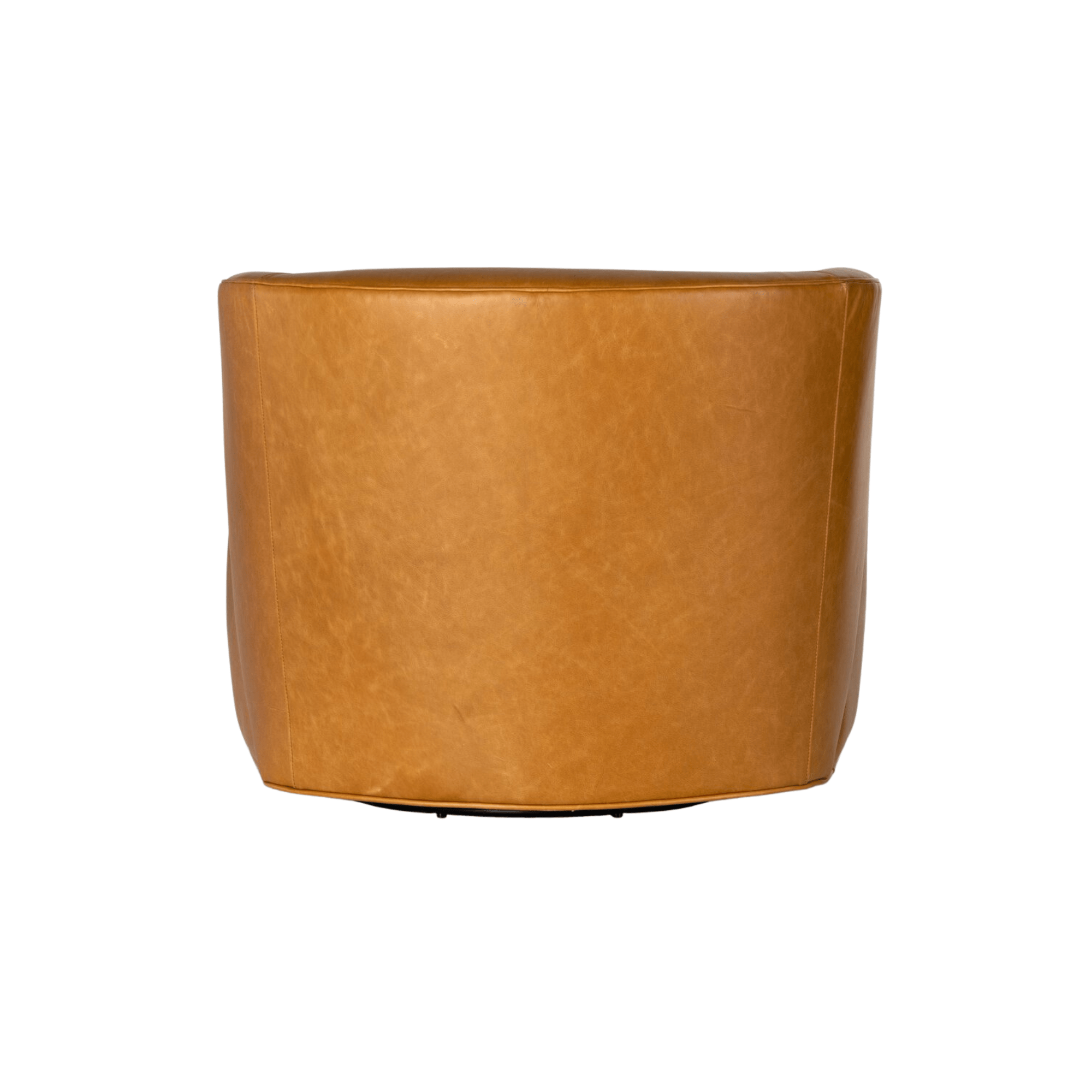 Supple, camel-colored top-grain leather hugs the curves of this barrel-inspired seat, featuring a hidden 360-degree swivel.