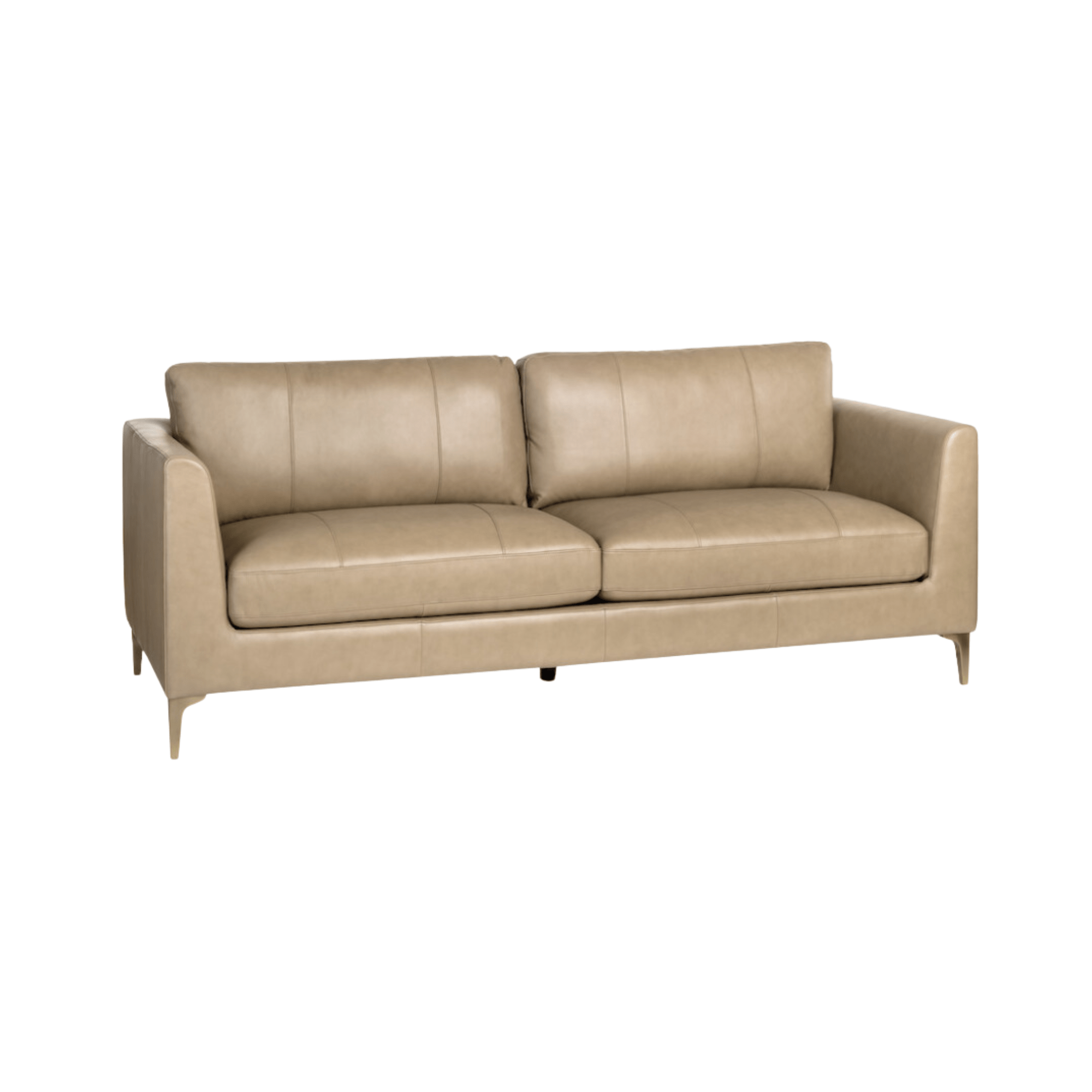 Experience luxurious comfort with the Milo Sofa. Made with sleek leather, the beige color adds a sophisticated touch to any living space. The wide channeled stitch offers both style and support, making it the perfect addition to your home. Elevate your relaxation game with the Milo Sofa.