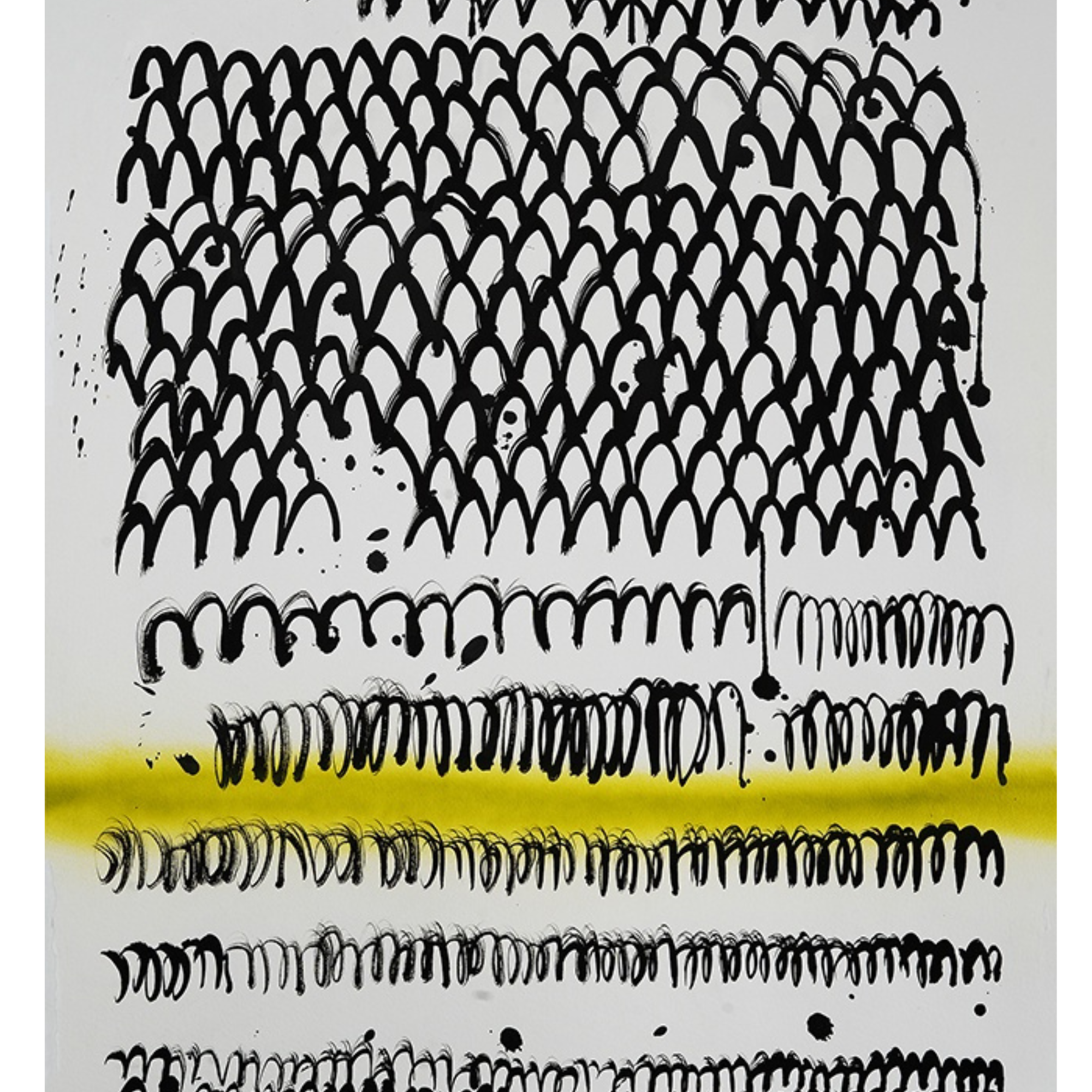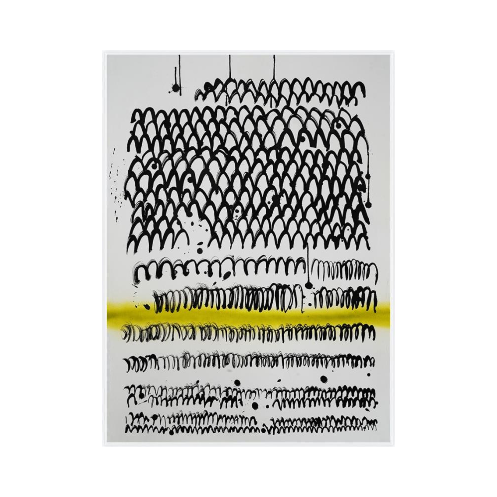 Brush gel image on canvas. Comes with pre-installed hardware for hanging.