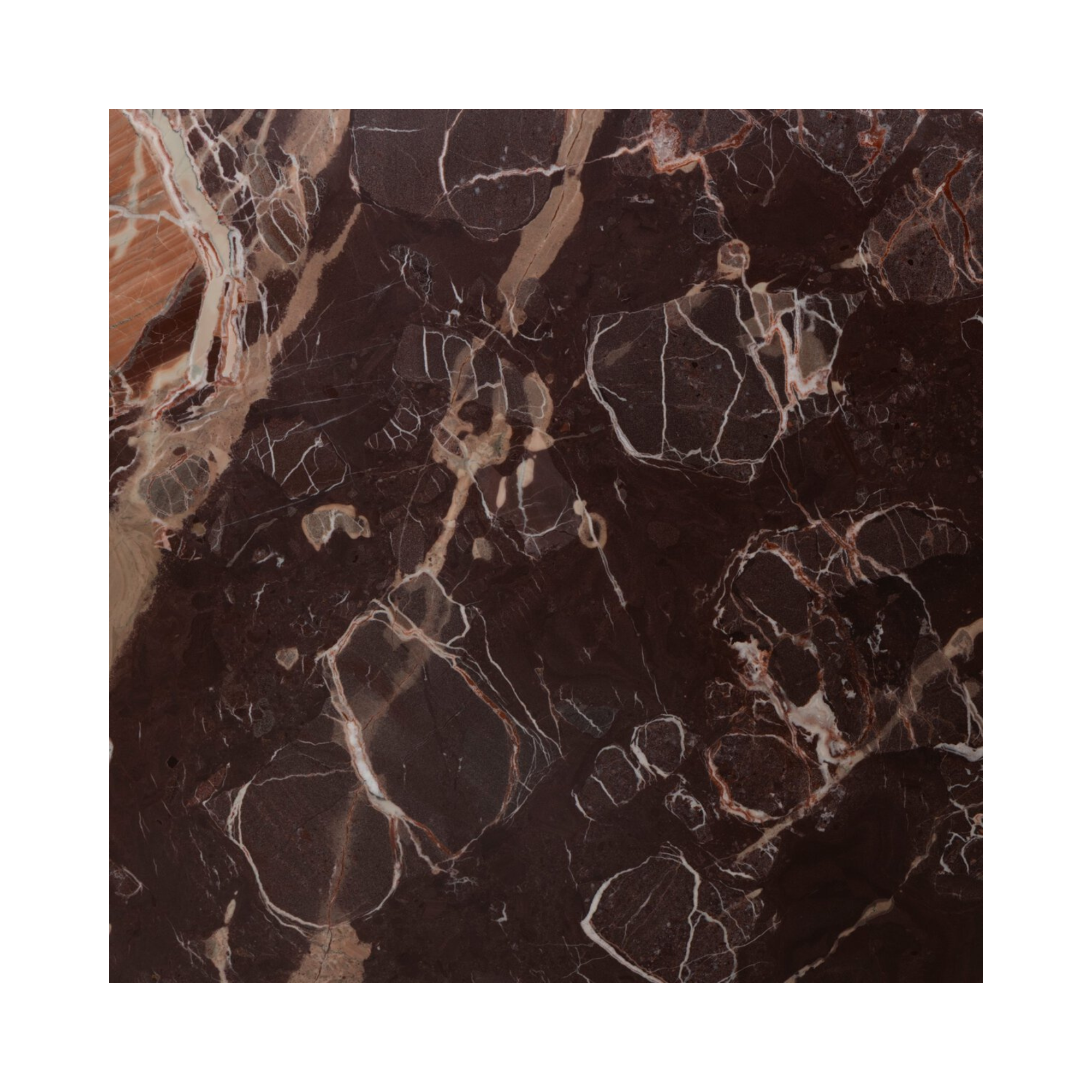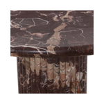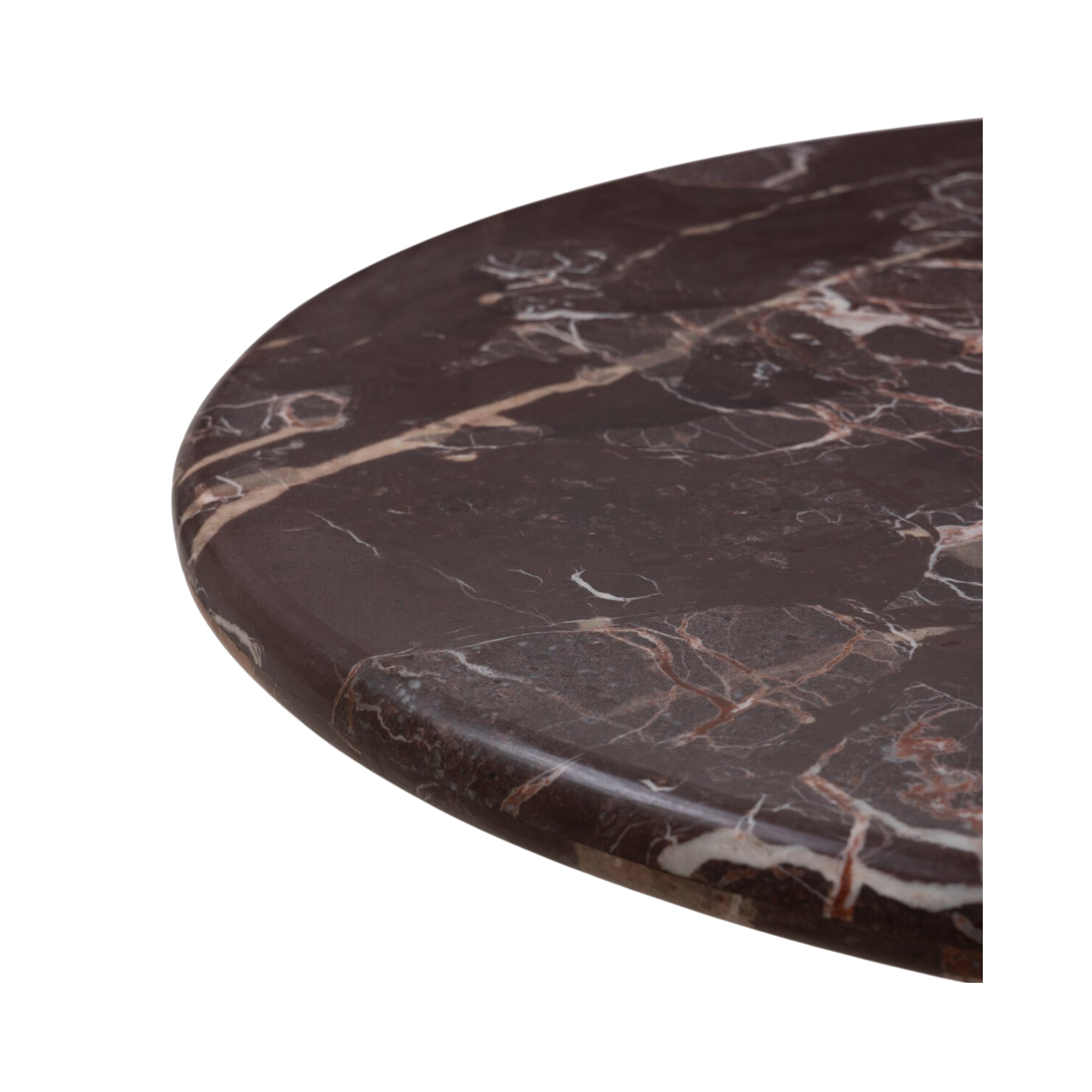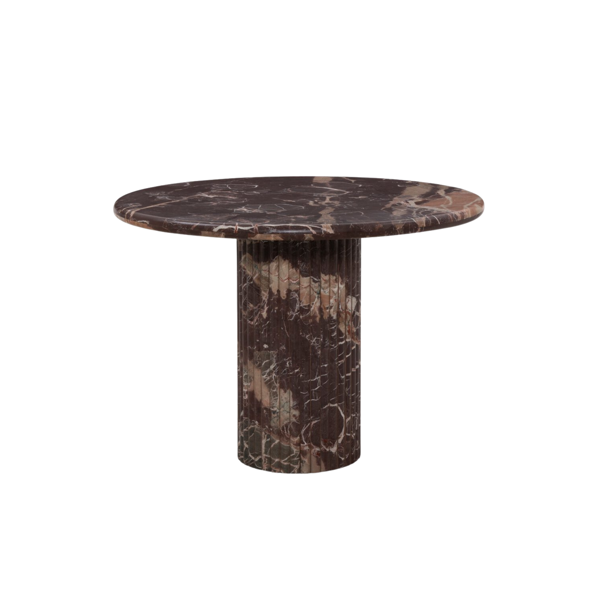 Inspired by Italian design, a swirling marble base is scalloped for a linear look with heavy texture, finished with a rounded, bistro-size tabletop of polished marble.