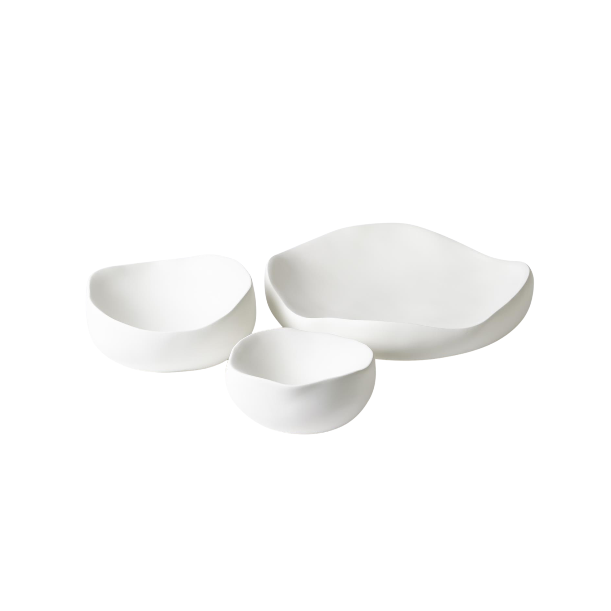 These organic shaped round bowls are available in matte white and in three sizes. Handcrafted in Italy. Product is not food safe.