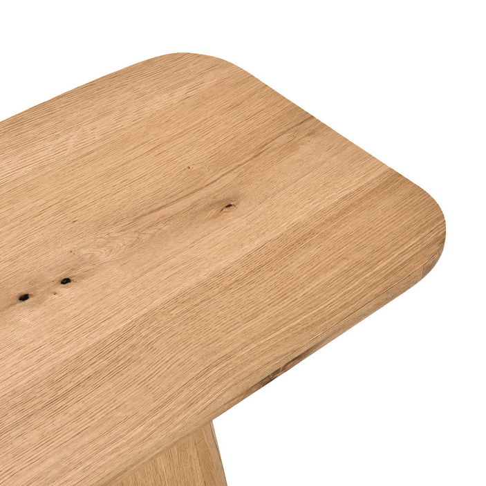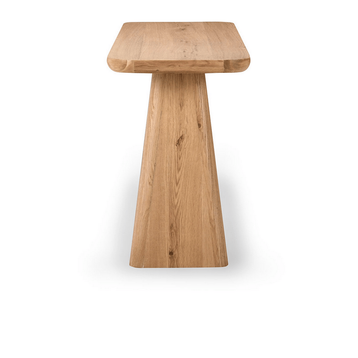 Featuring beveled corners and an elegantly angled pedestal base, the Orlando Console Table redefines modern sophistication. Its bold design highlights the natural beauty of oak that elevates any interior space.