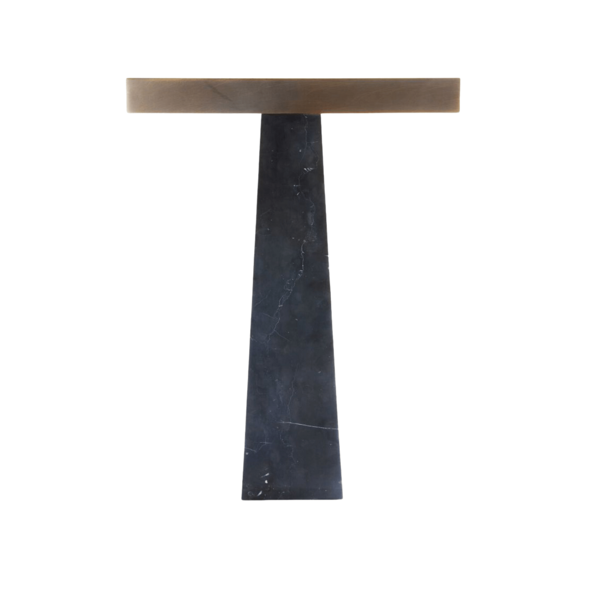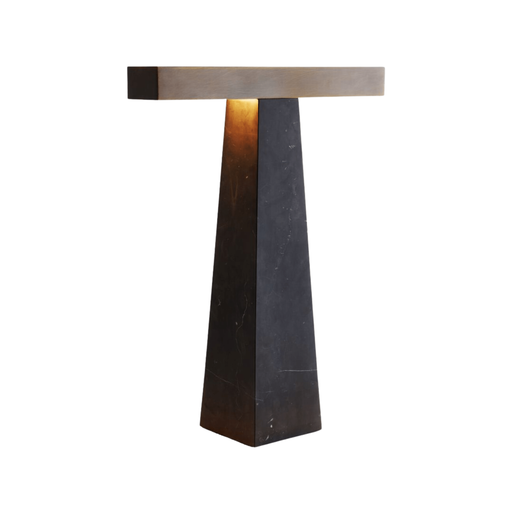 An exercise in the balance of materials and the execution of modern design is unveiled in the Osbert. The minimalist T-shape profile is constructed of a sleek steel top and a robust black marble base. The steel top features an English bronze finish and neatly conceals an LED strip for an ultra-modern look. Finish and marble will vary.