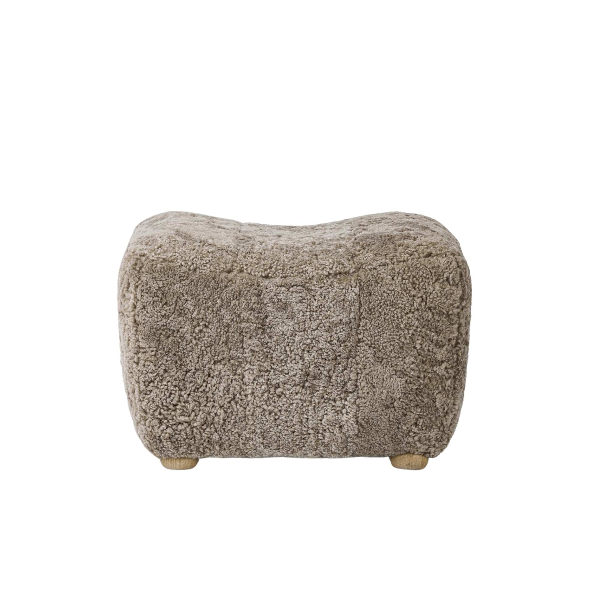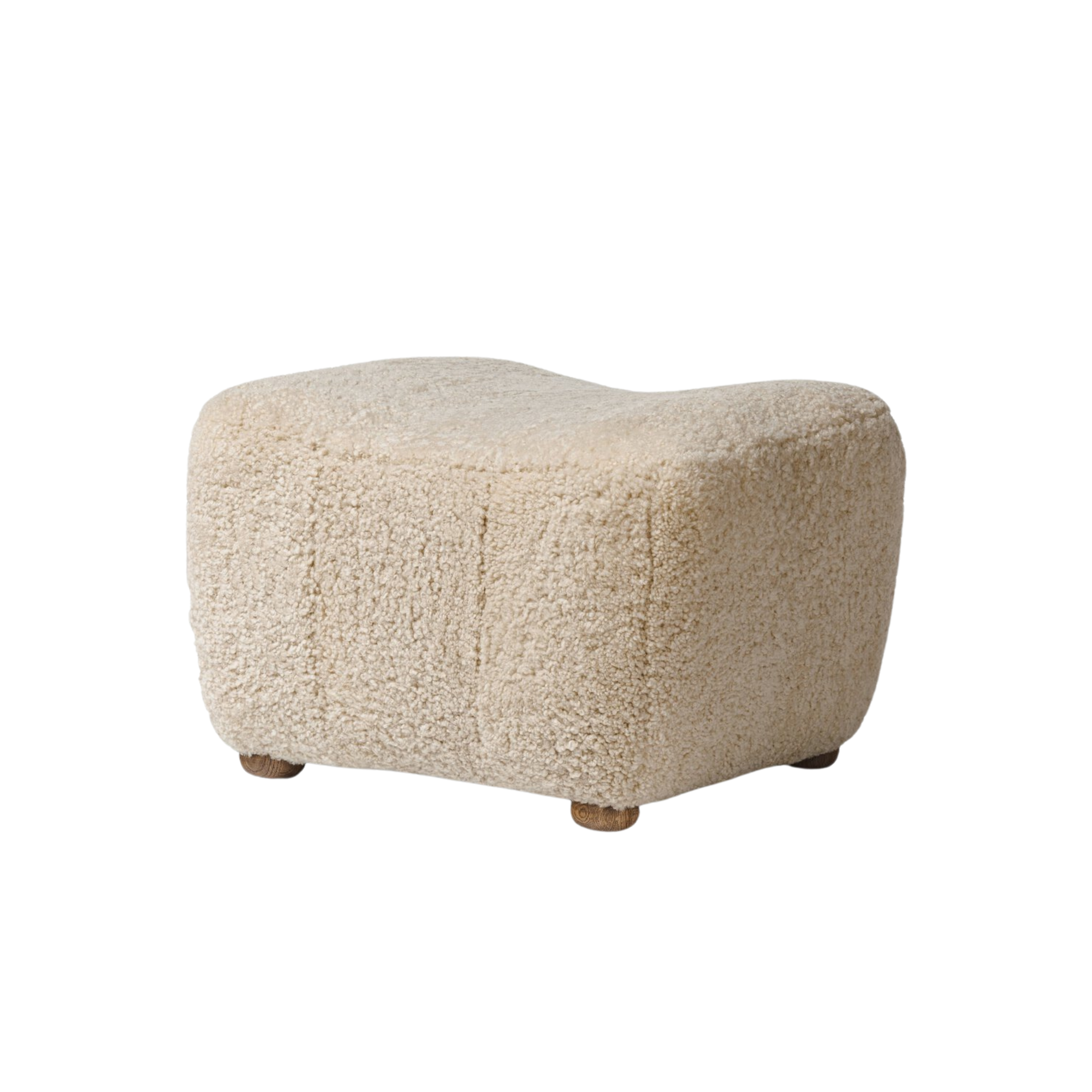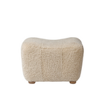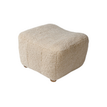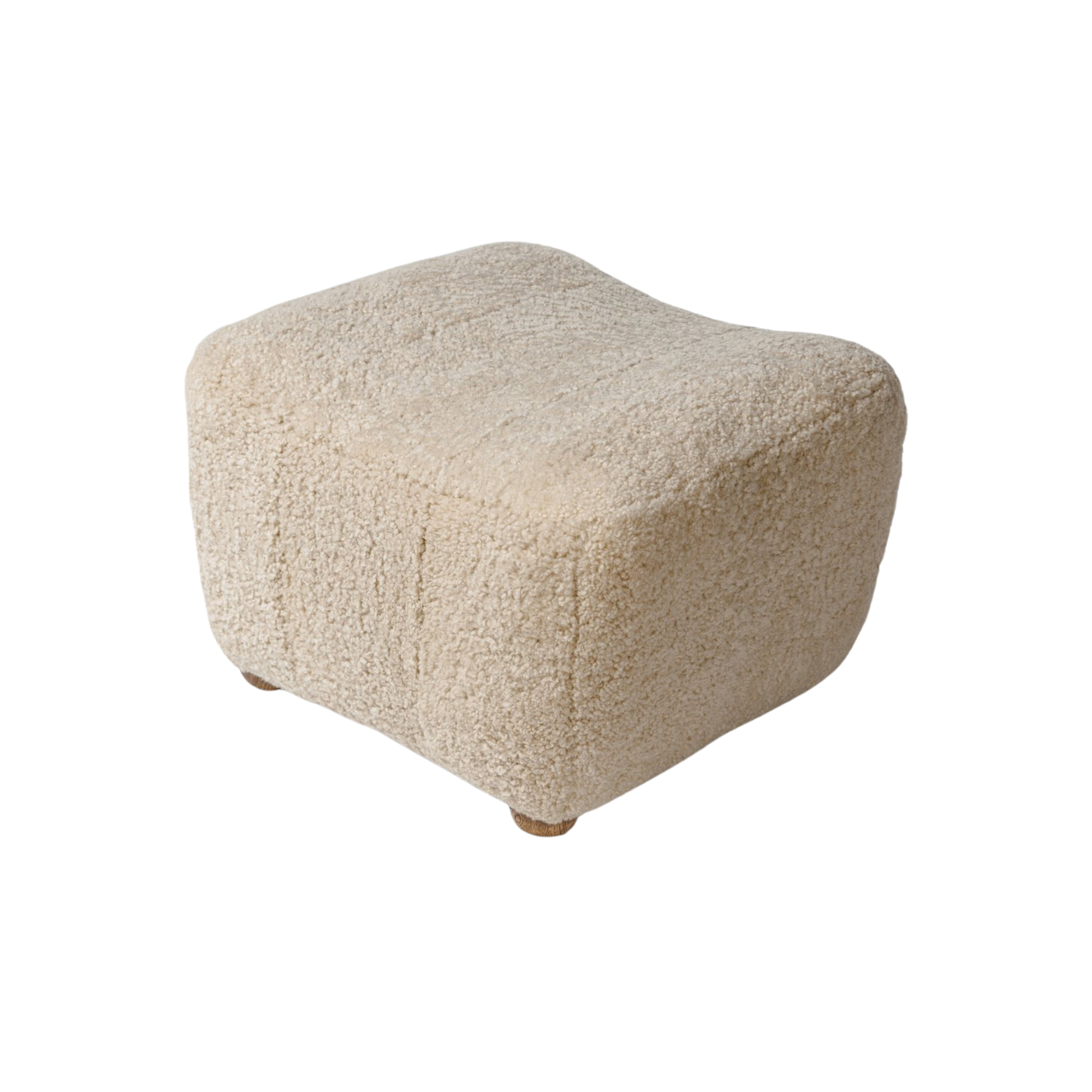 A subtle sweetheart shape paired with beige shearling plays into this ottoman's found object appeal. S-spring suspension offers a comfy place to sit and the shearling upholstery brings depth and vintage vibes throughout. Perfect styled alone or as part of a set for added drama.