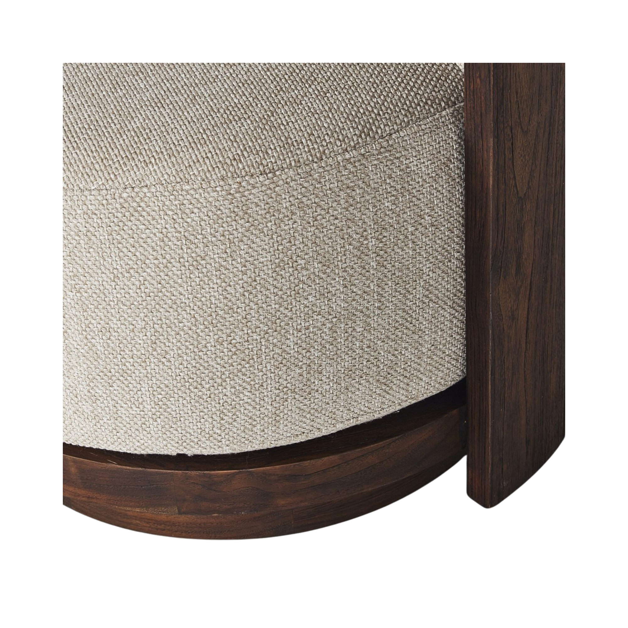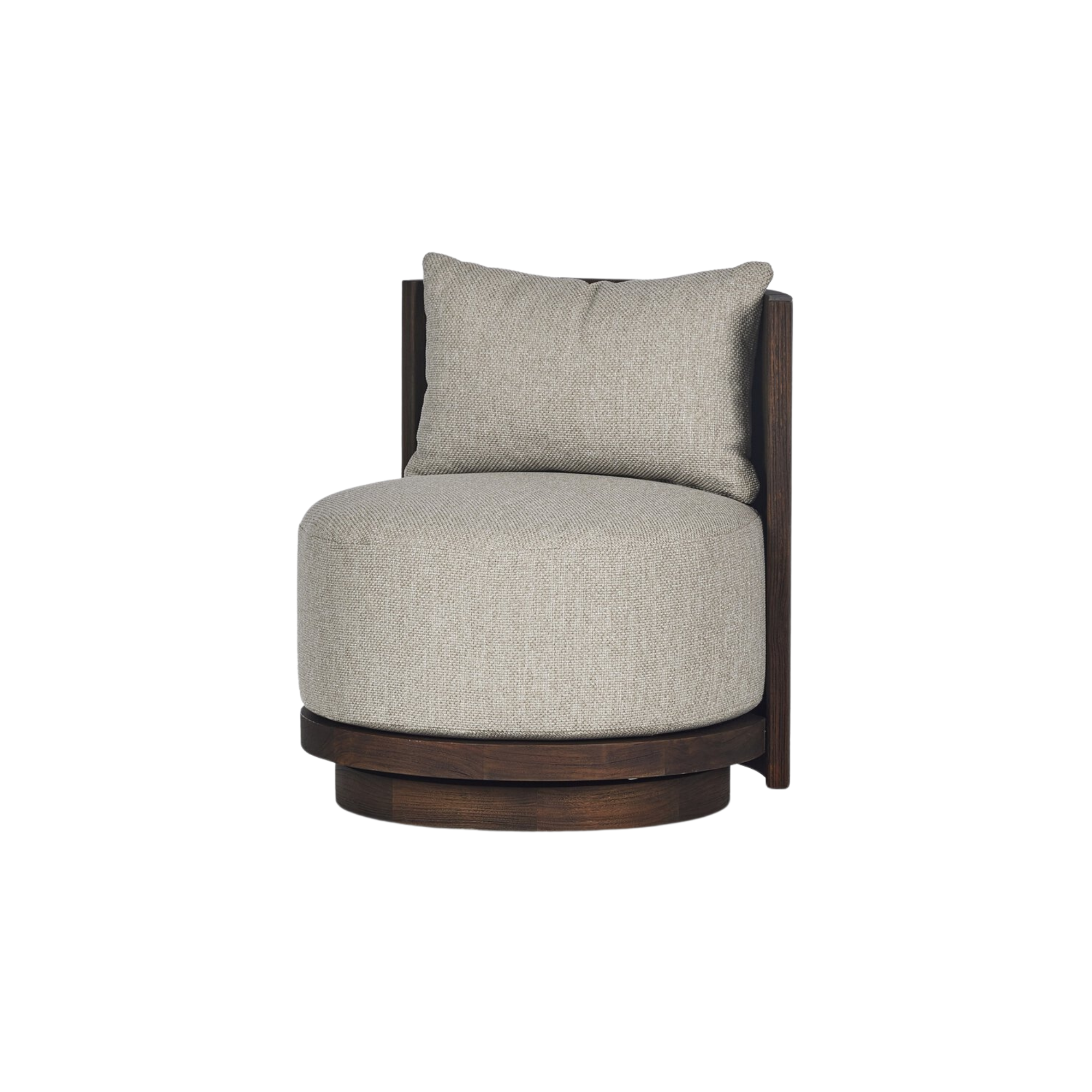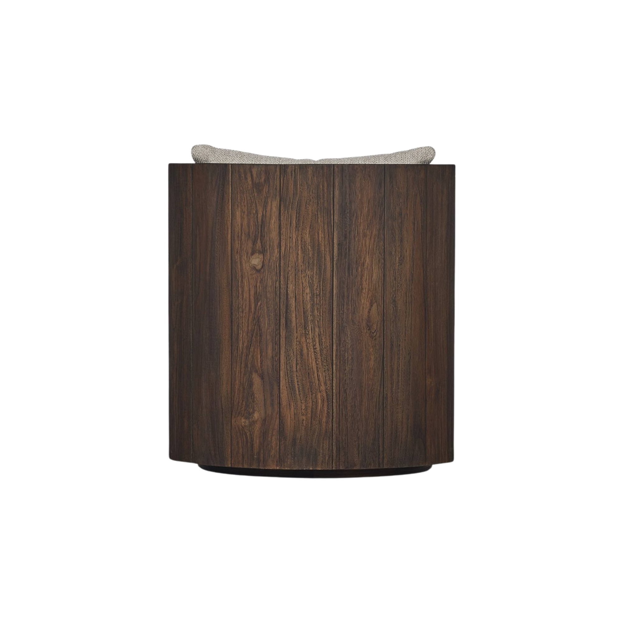 Small-scale style defines this 360 swivel chair. Rounded FSC®-certified teak frames a round seat and loose back cushion. Sustainably made with zero waste, luxurious Italian upholstery places a new and unique spin on indoor/outdoor seating, offering soft, durable fabric that's highly resistant to sun, stains, mold and abrasion. Cover or store indoors during inclement weather and when not in use.