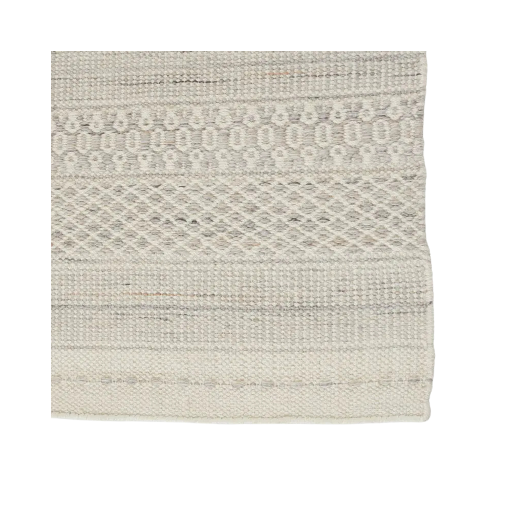 The handwoven Penrose collection features a soft feel and relaxed, versatile style. The Eliza area rug showcases a blend of cream and light gray tones for a grounding, neutral look. The geometric tribal pattern lends contemporary interest and the perfect dose of pattern. Crafted of 100% polyester yarn, this durable and textured rug brings warmth and inviting appeal to indoor and outdoor spaces alike. The performance-driven make fits into homes with pets and kids, while withstanding high traffic areas like patios, laundry rooms, kitchens, living rooms, entryways, or halls.