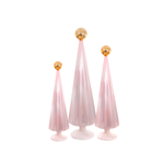 Festive charm graces your holiday display with this set of three pleated trees in soft pink and gold. Each accordion-style tree features crisp pleats that catch the light beautifully, creating visual interest from every angle. These whimsical trees add a modern twist to classic Christmas décor.