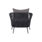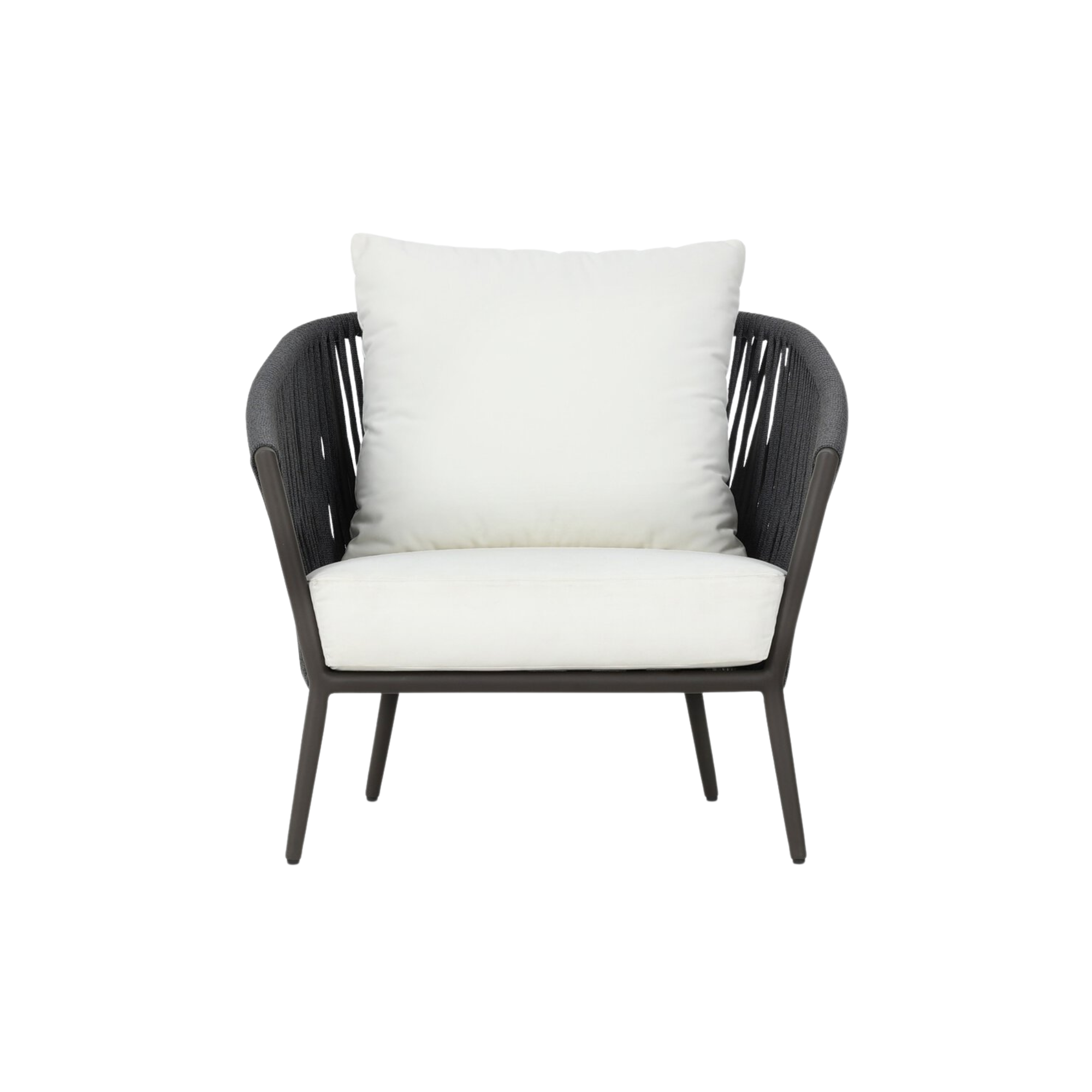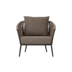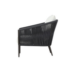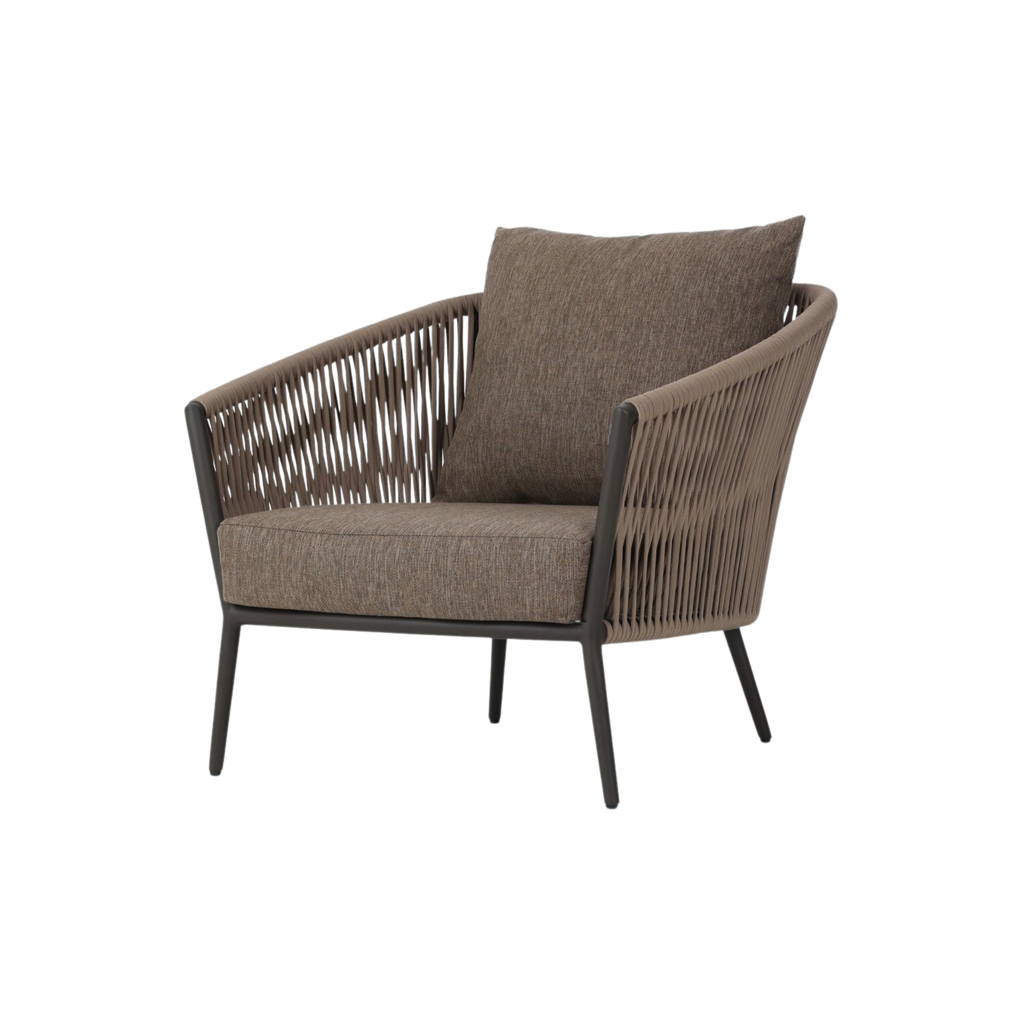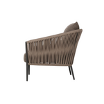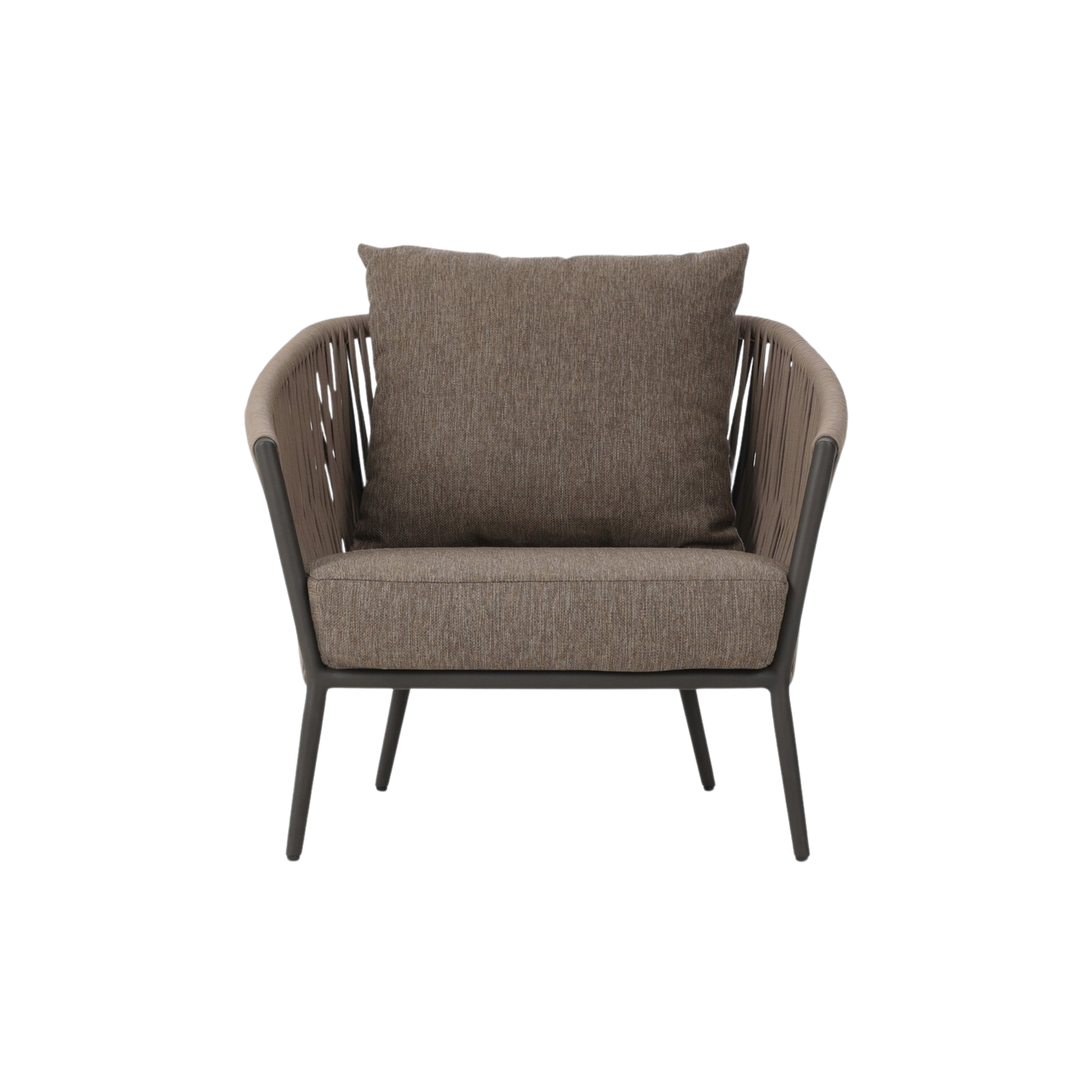 The perfect place for outdoor daydreaming. A beautiful rope-based design is woven across a durable aluminum frame in a rich bronze finish. Topped with a wide cushion and throw pillow, all upholstered in 100% olefin, known for its UV-resistant, water-repellent and quick-drying abilities. Cover or store indoors during inclement weather and when not in use.