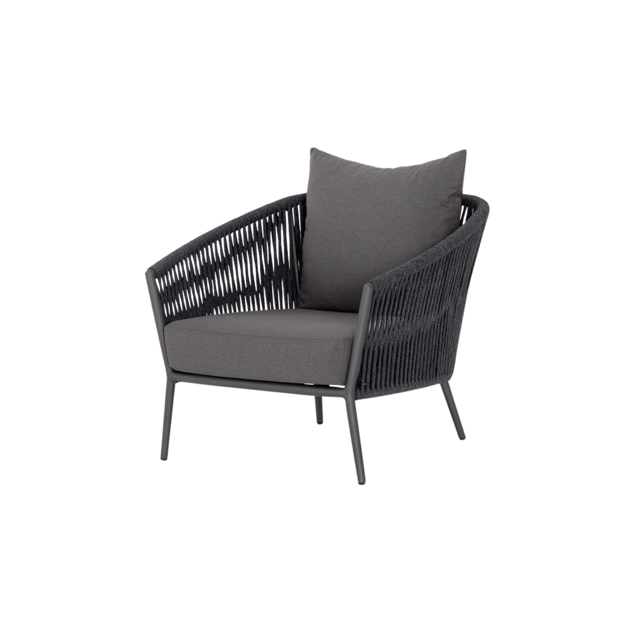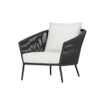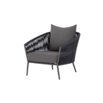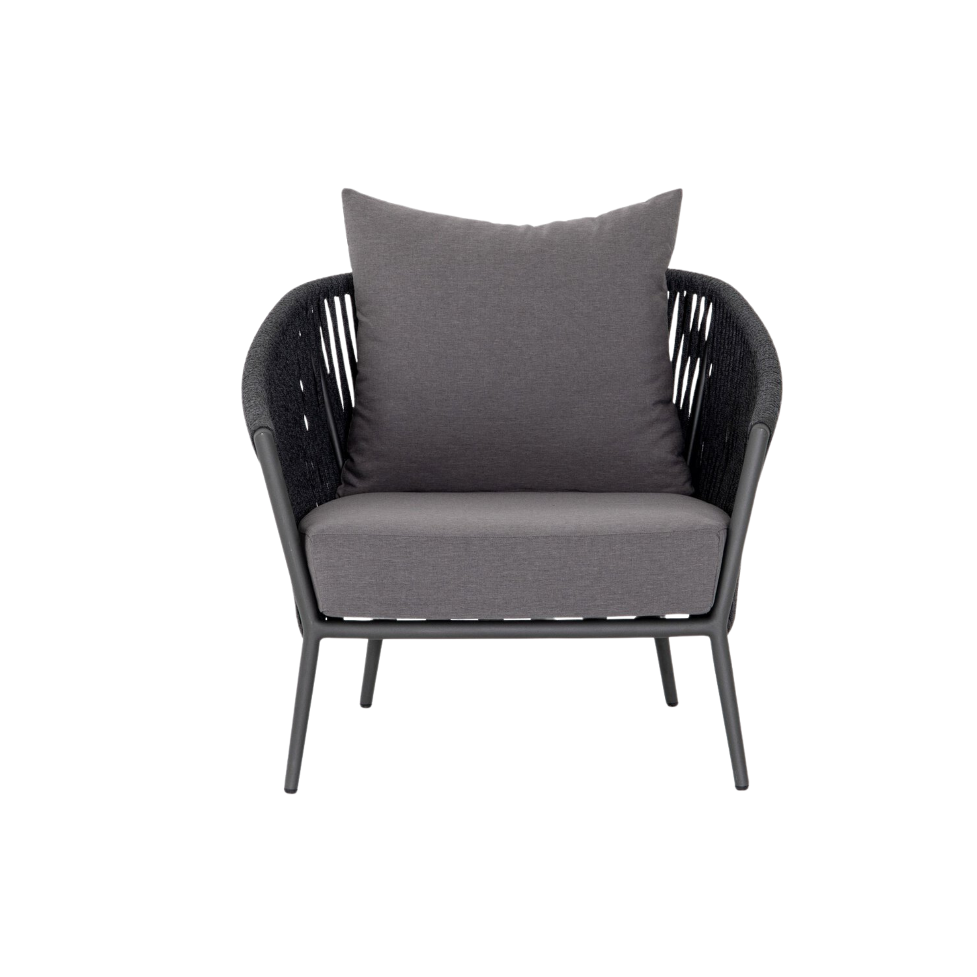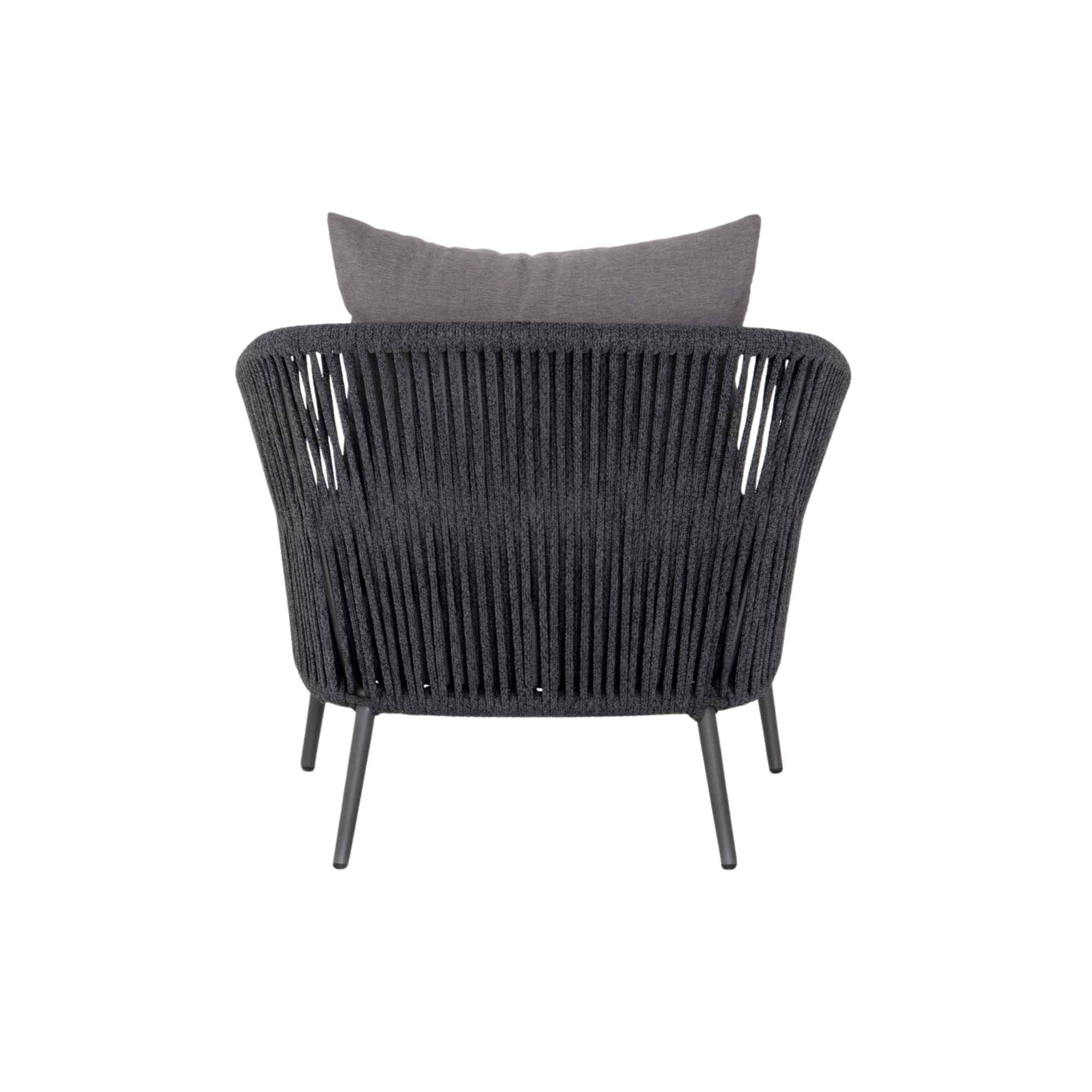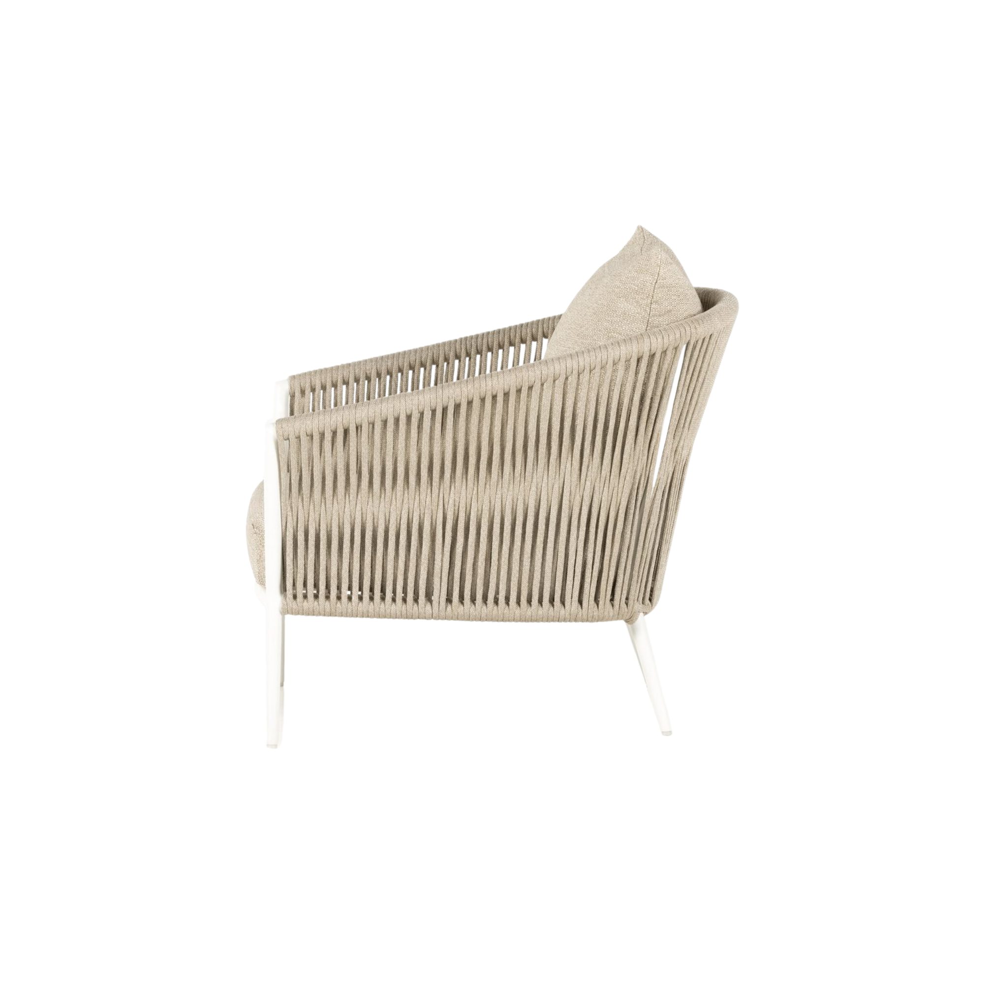 The perfect place for outdoor daydreaming. A beautiful rope-based design is woven across a durable aluminum frame in a rich bronze finish. Topped with a wide cushion and throw pillow, all upholstered in 100% olefin, known for its UV-resistant, water-repellent and quick-drying abilities. Cover or store indoors during inclement weather and when not in use.