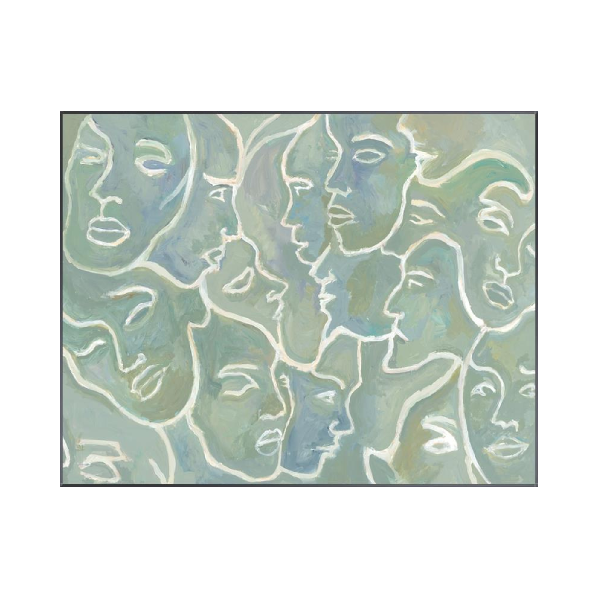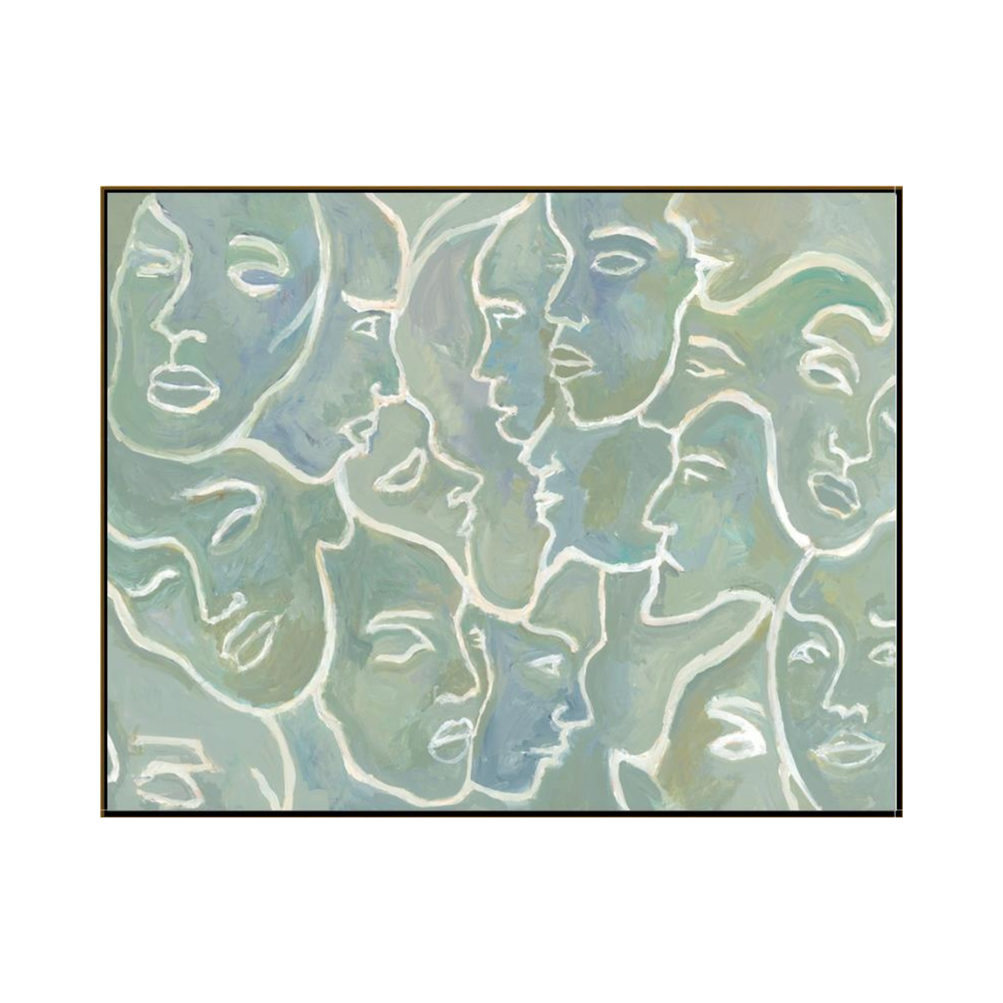 Brushed gel image on canvas. Comes with pre-installed hardware for hanging.