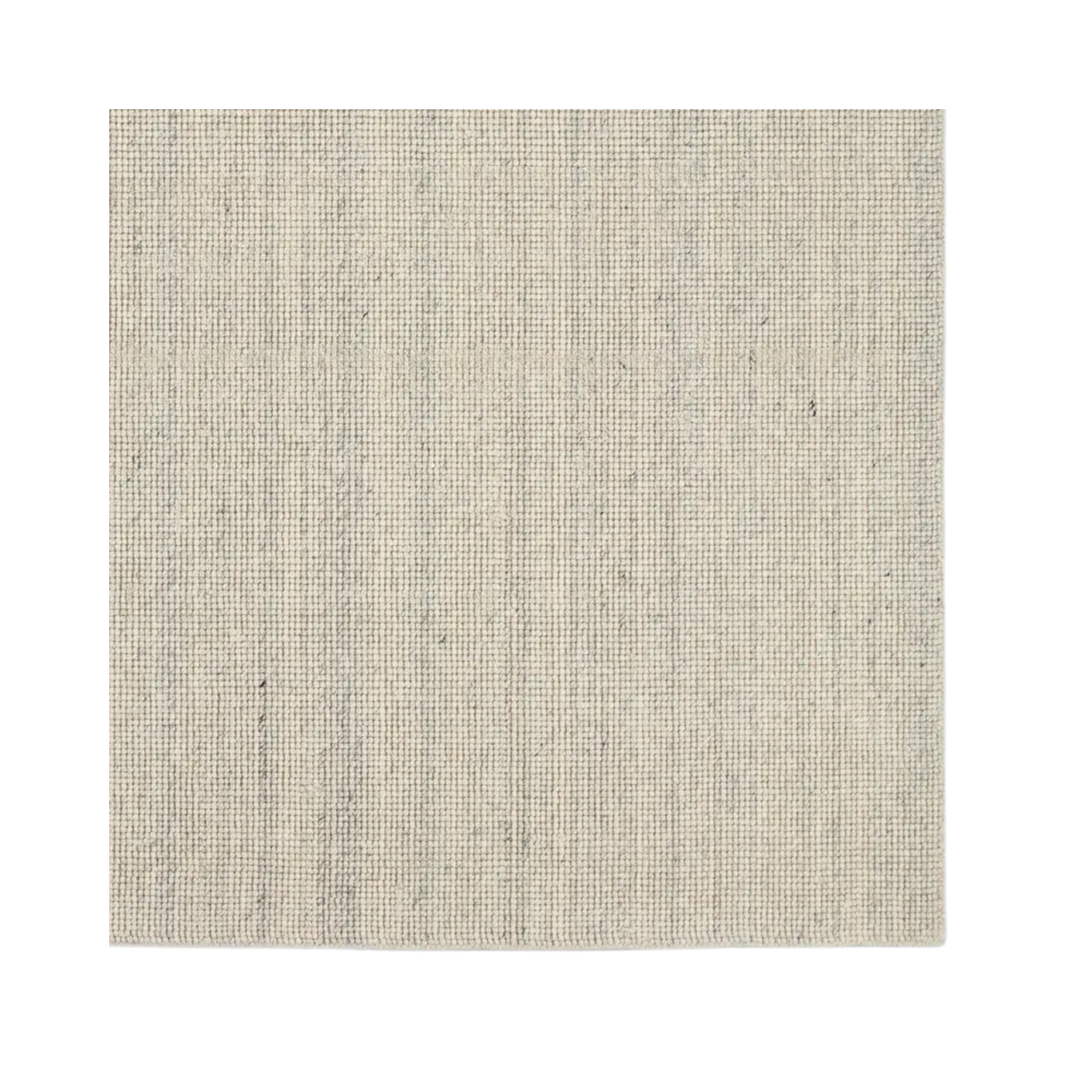 Anchor your space with the rich texture of Mere. 100% wool is handspun with generous loops to offer distinct dimension in light gray and cream hues. Easy to design around, it's a flawless fit for practically any room and interior style.