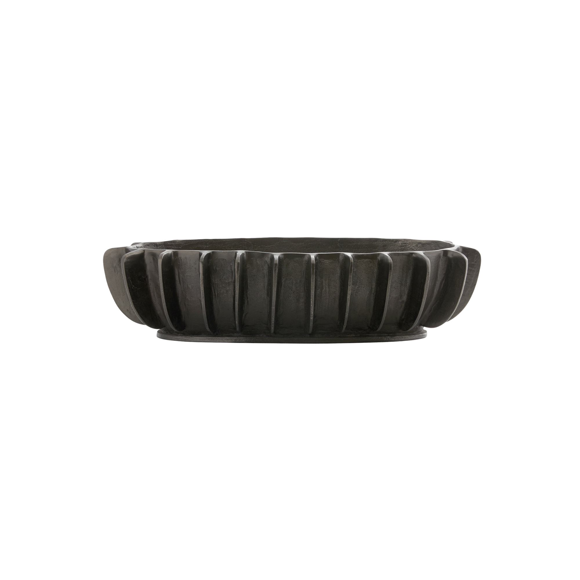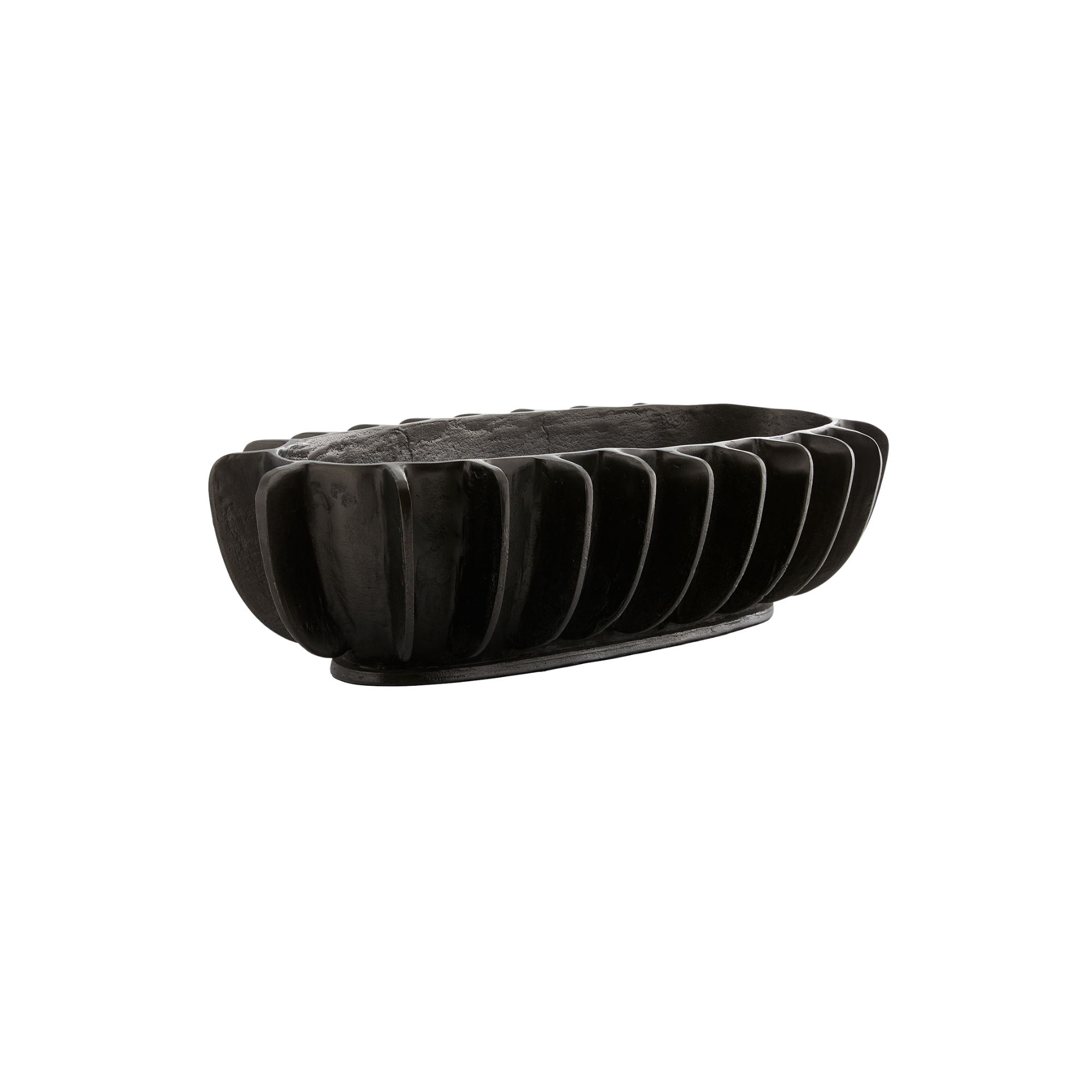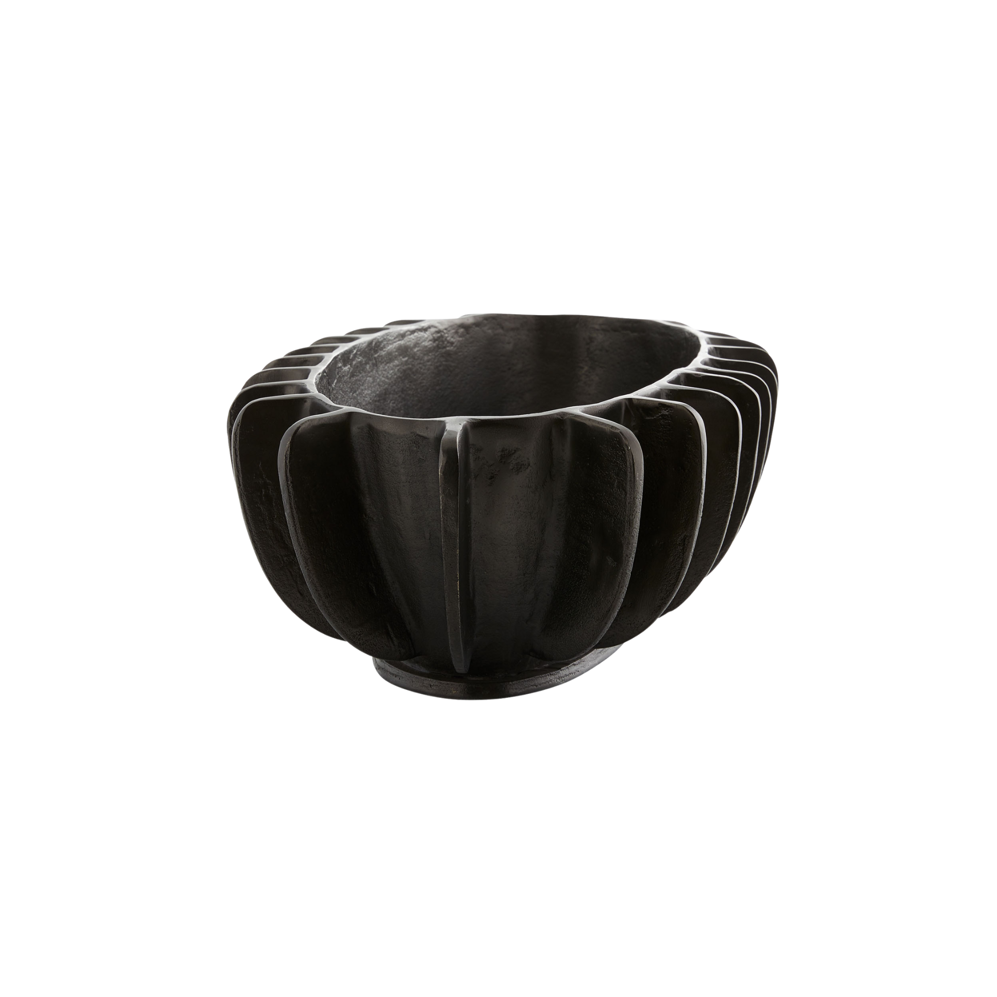 The artisan nature of this metal centerpiece is reminiscent of modernist metalworks from Northern Italy. The bronze finish on the cast aluminum adds interest to any surface. Finish will vary.