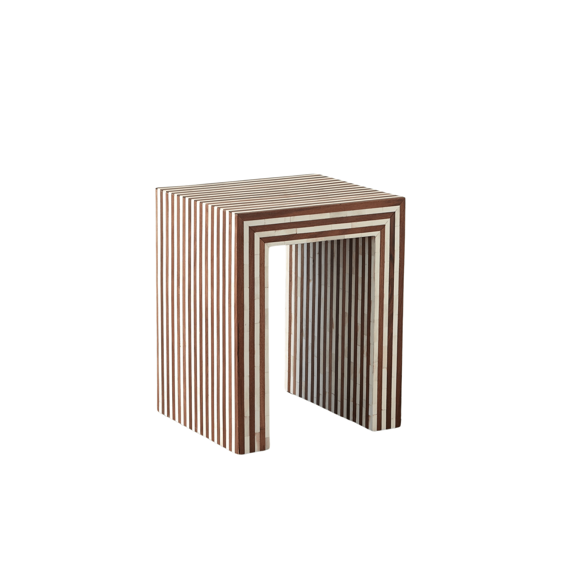 The Sienna Collection pattern is made by alternating walnut wood, bone, and mango wood. Natural lacquer finish. The two sizes nest effortlessly to add an elevated look.