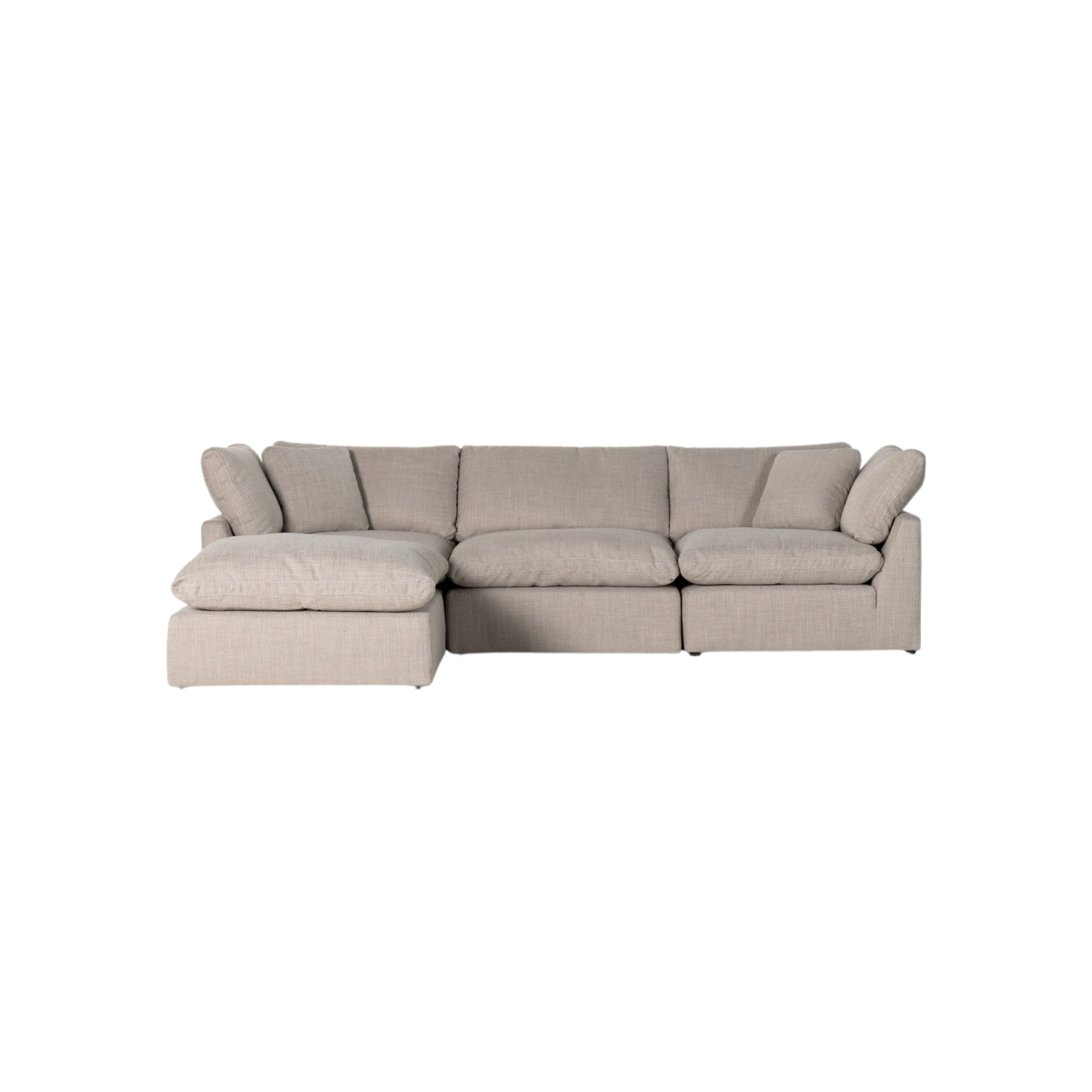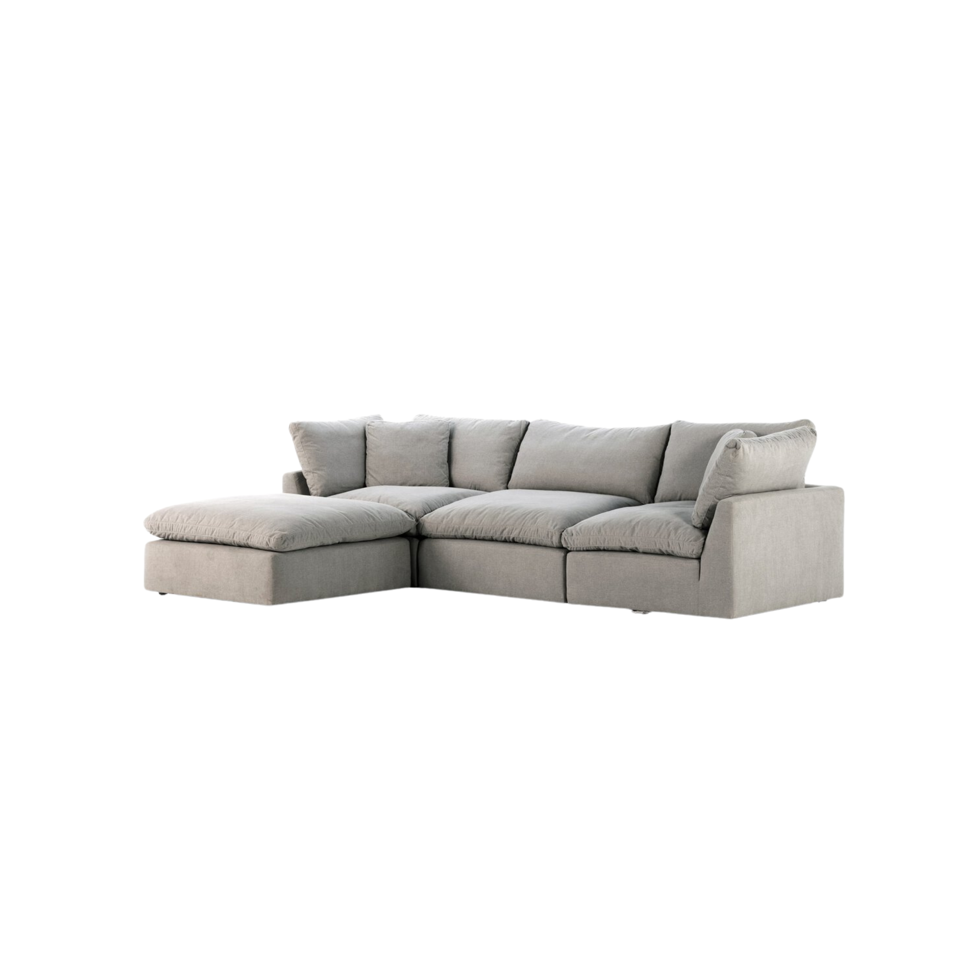 Equal parts casual and chic. Feather-blend cushioning, high-performance upholstery and modular options make the Stetson an easy go-to in any sized space. Three piece sectional with ottoman.