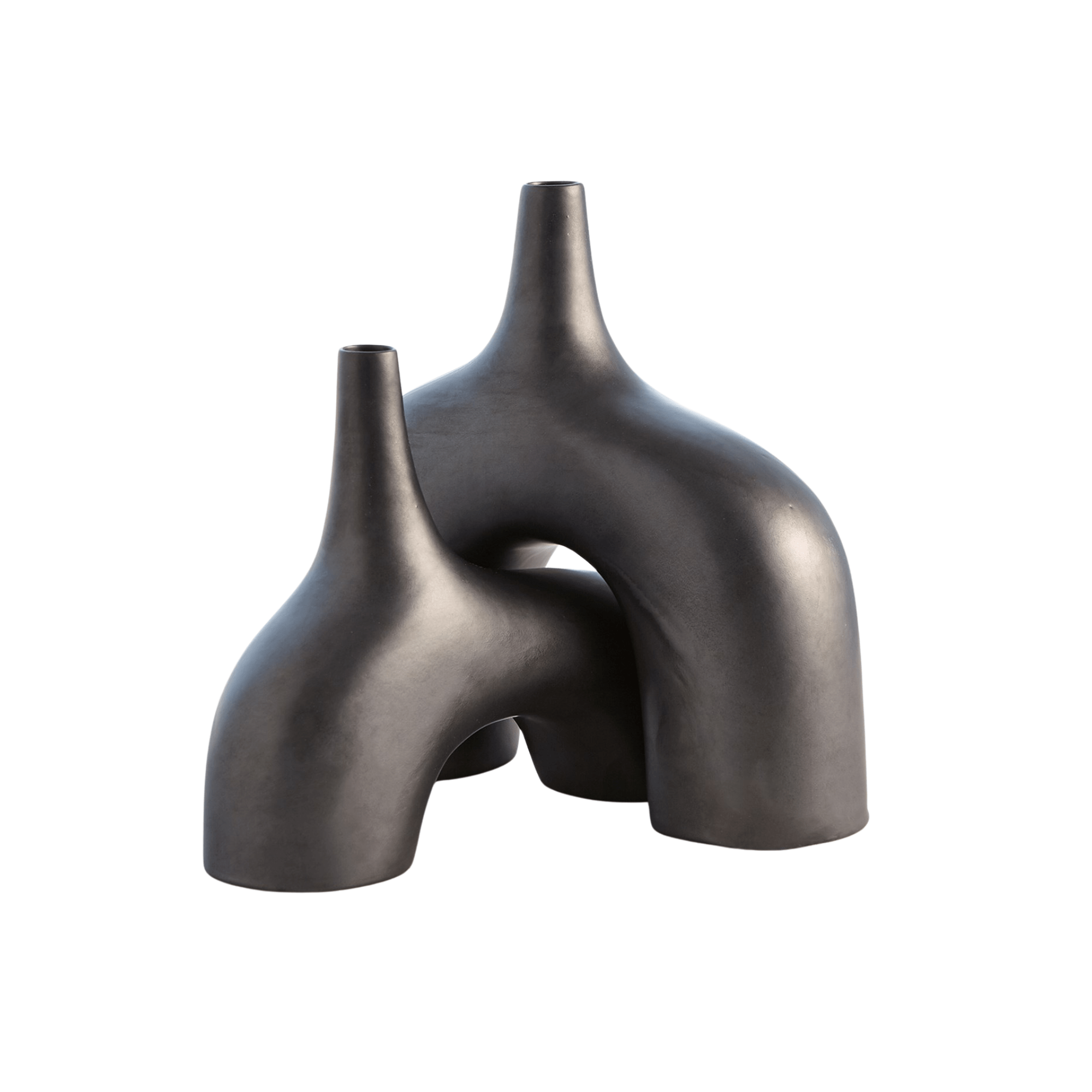 Reminiscent of the 1960's lava glaze ceramics, The Stretch Vases are slip cast vessels that nest/straddle each other.