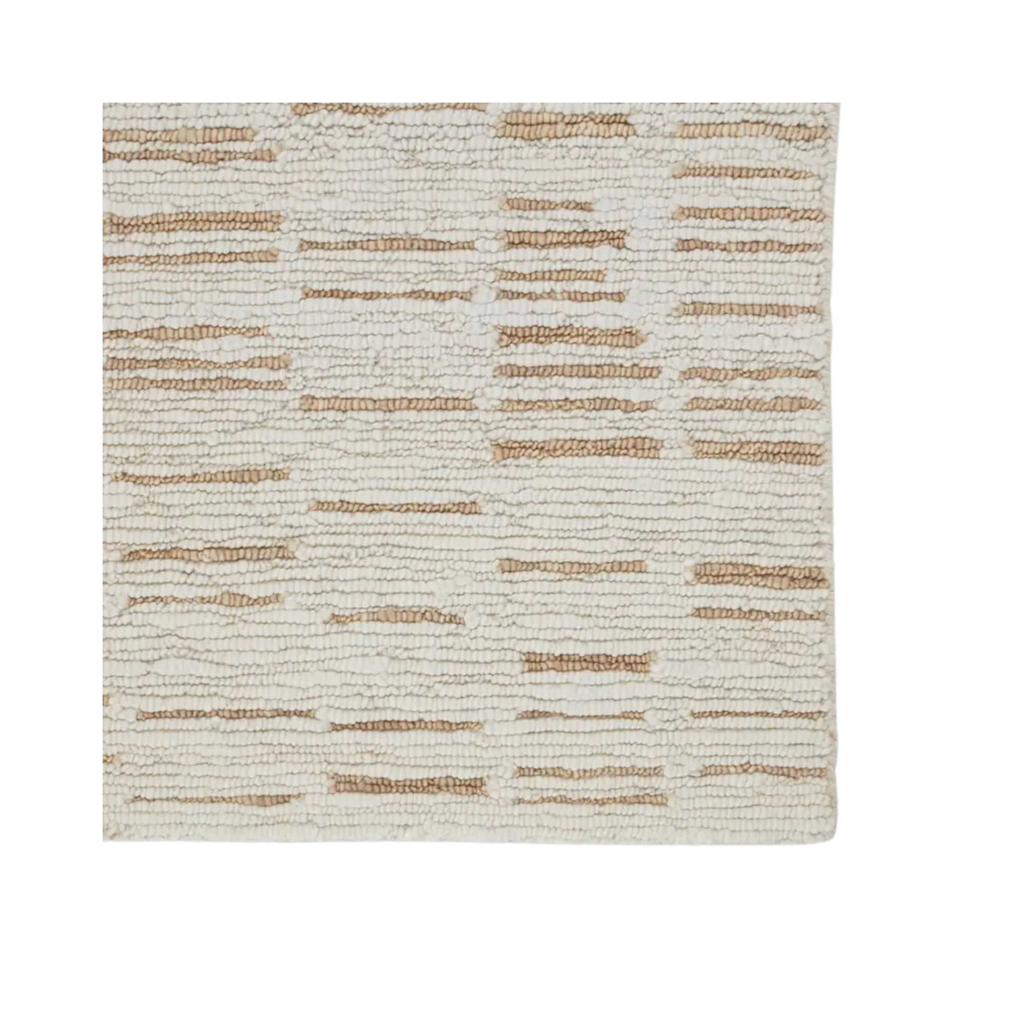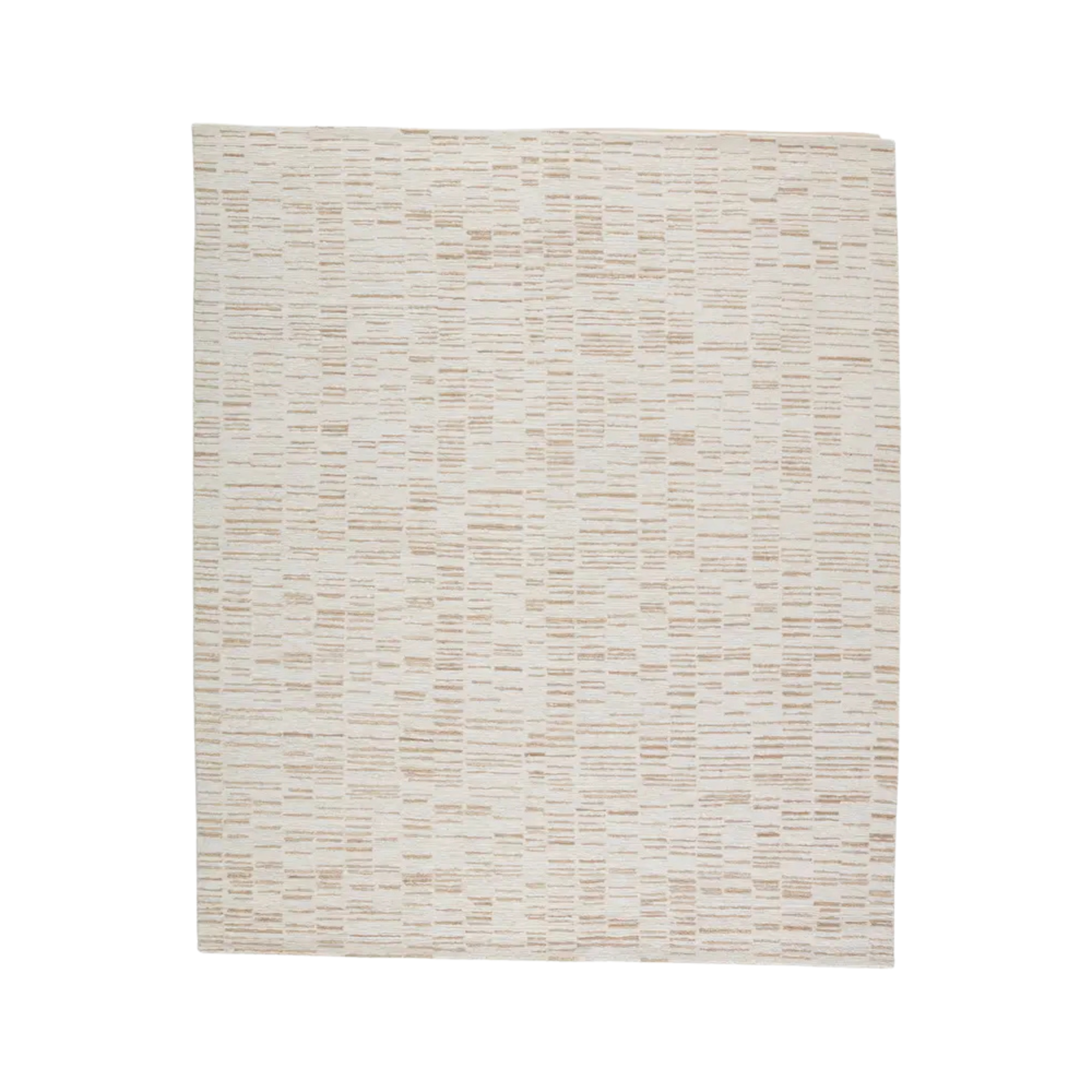 The Tenor collection effortlessly melds casual, livable style with hand-knotted craftsmanship. Embracing the modern Moroccan trend, the Viso rug showcases a cream and warm tan linear motif that is both eye-catching and textural. The Soumak-style weave offers an authentic look to the stunning quality of this artisan-made rug.
