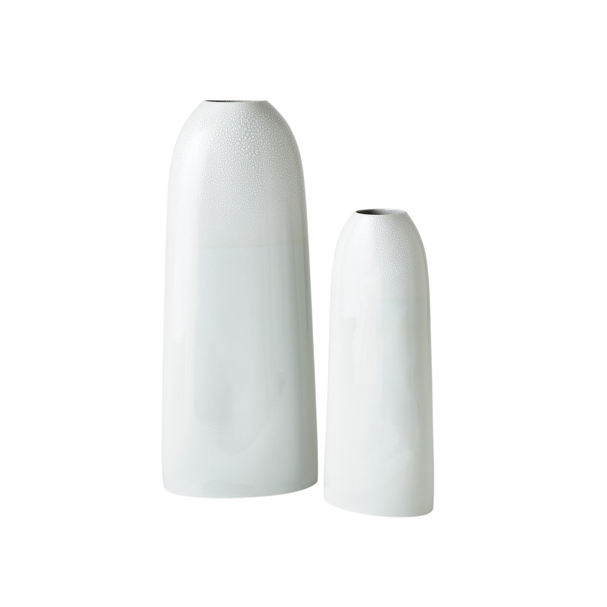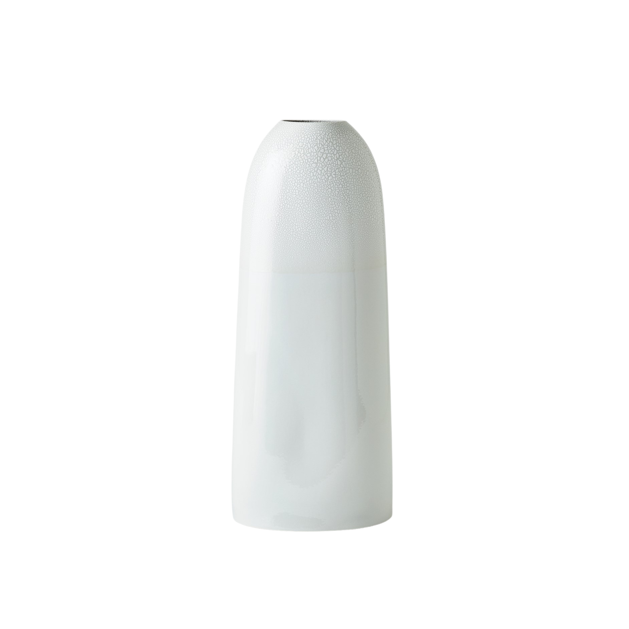 The Terra Vase showcases the craftsmanship of Portuguese slip-cast ceramic construction. Its white crackled finish on the upper half adds texture and visual interest, making it a sophisticated choice for displaying floral arrangements. This vase combines traditional techniques with contemporary design, perfect to accent any space.