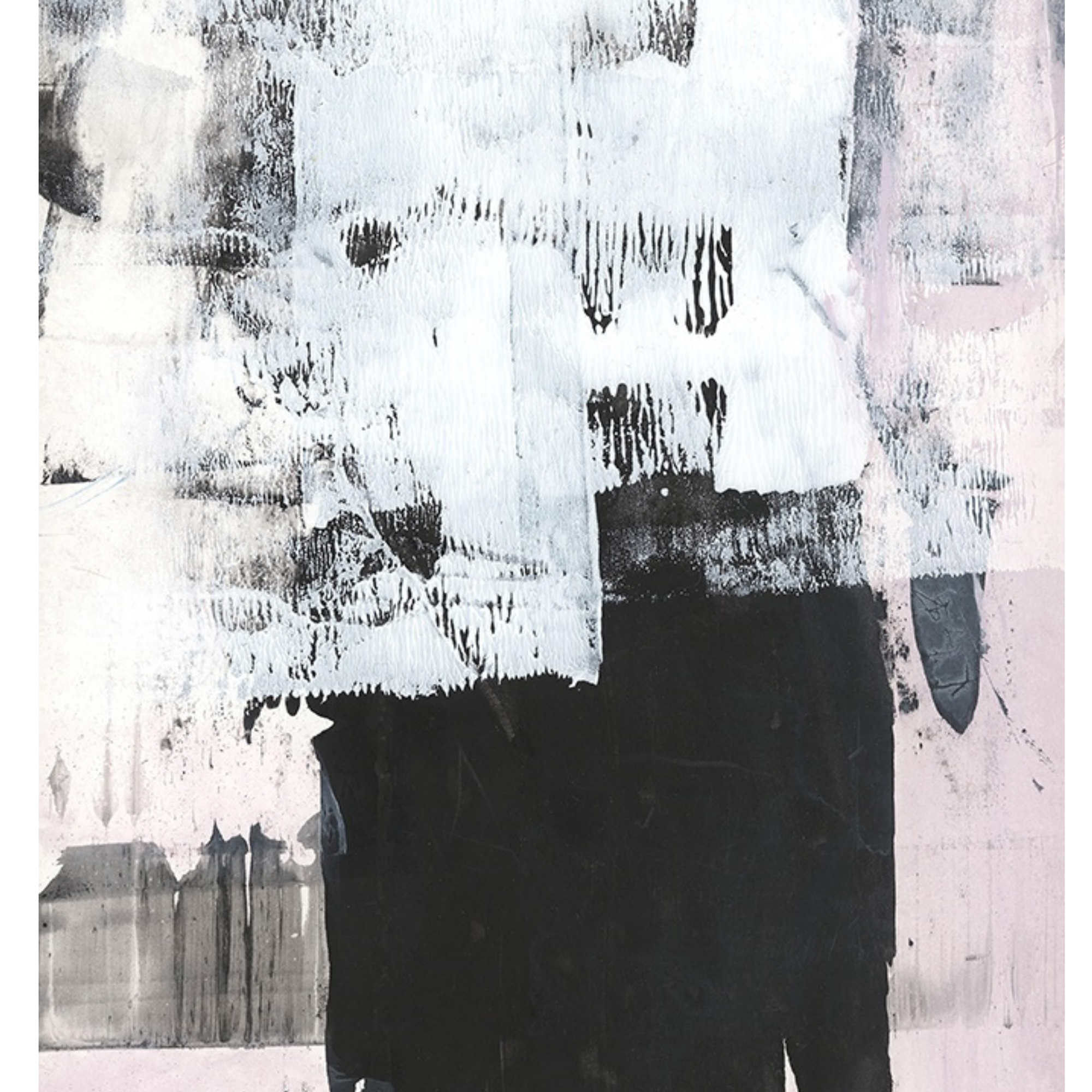 Brush gel image on canvas. Comes with pre-installed hardware for hanging.