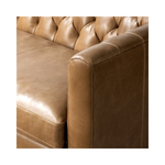 A modern take on the traditional Chesterfield sofa. Designed with buttonless-tufting in a diamond pattern around the arms and back, and a clean bench seat for subtle contrast. Upholstered in a soft, buttery top-grain leather in rich camel that pairs perfectly with classically tapered parawood legs.