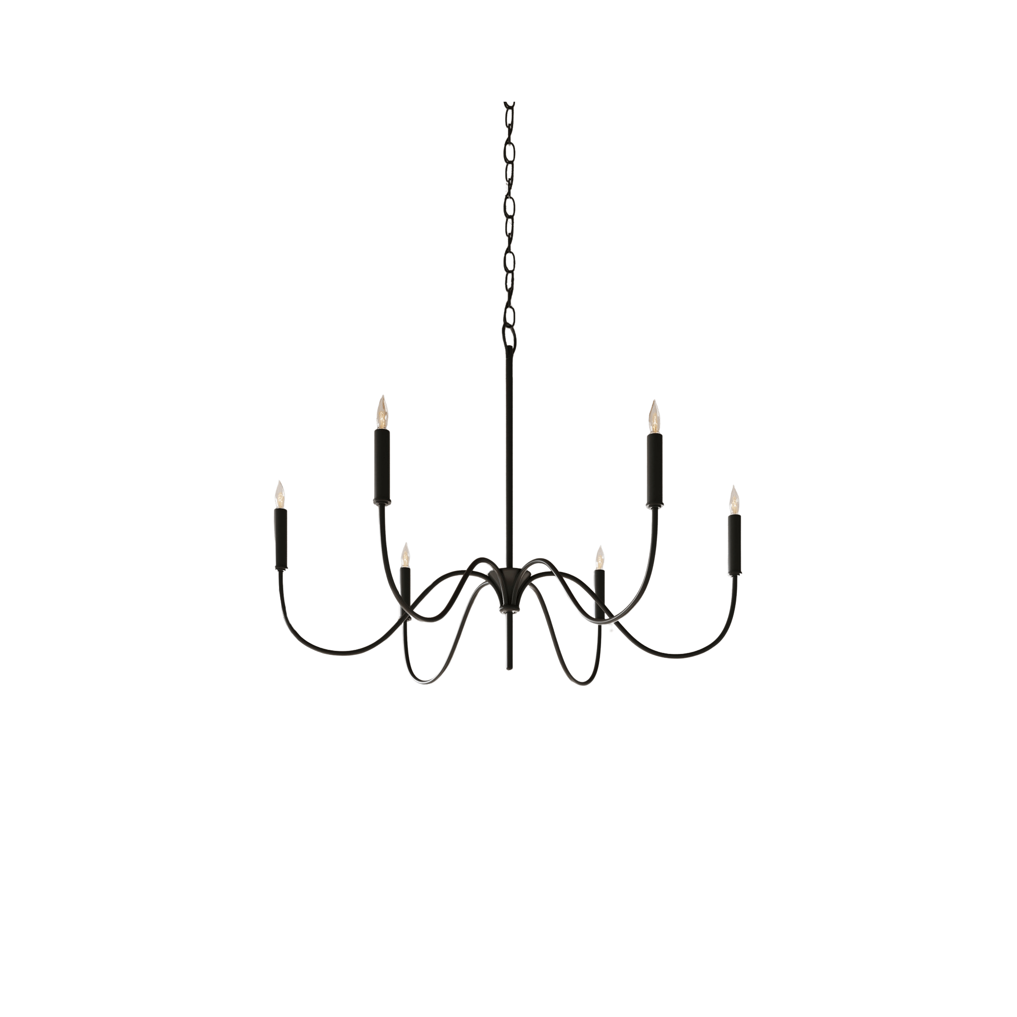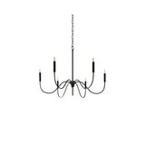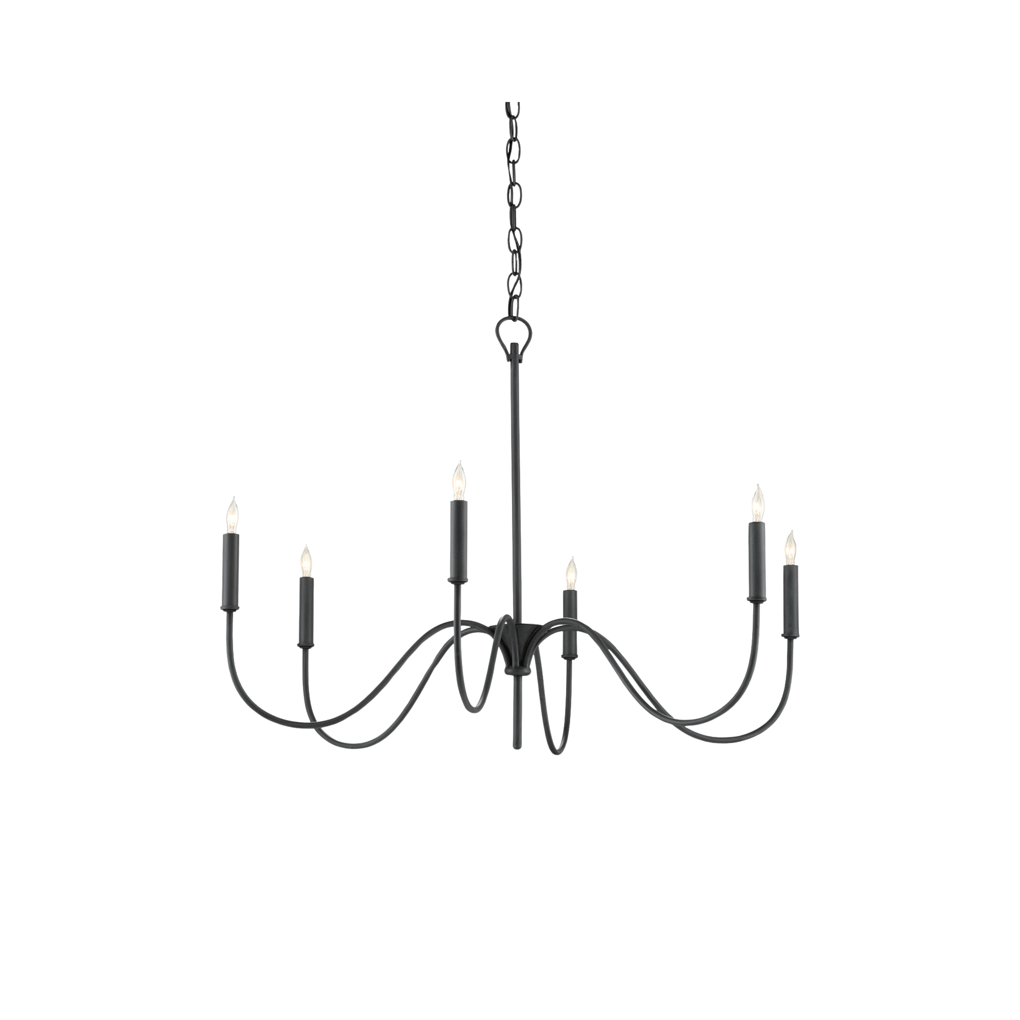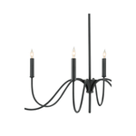 A nod to Early American style, the Titan Small Chandelier has graceful arms that arc upward to hold its candle sleeves with simple dignity. The black chandelier is made of wrought iron in an antique black finish.