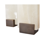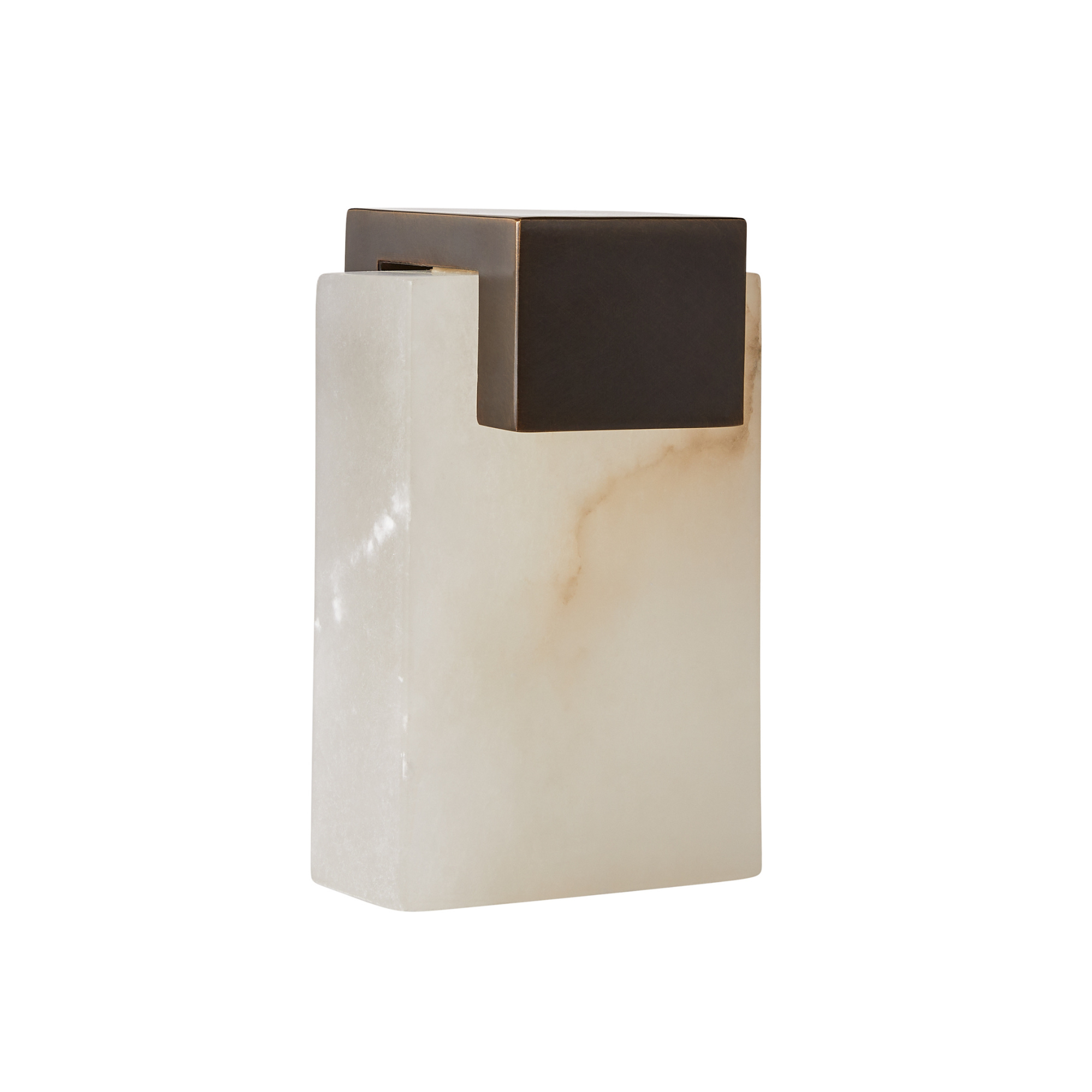 As bookends or sculptures, our white alabaster and bronze steel bookends celebrate elemental geometry. The pieces, which can be displayed in various orientations, can be used to flank books or as stunning sculptural objects. Finish will vary.