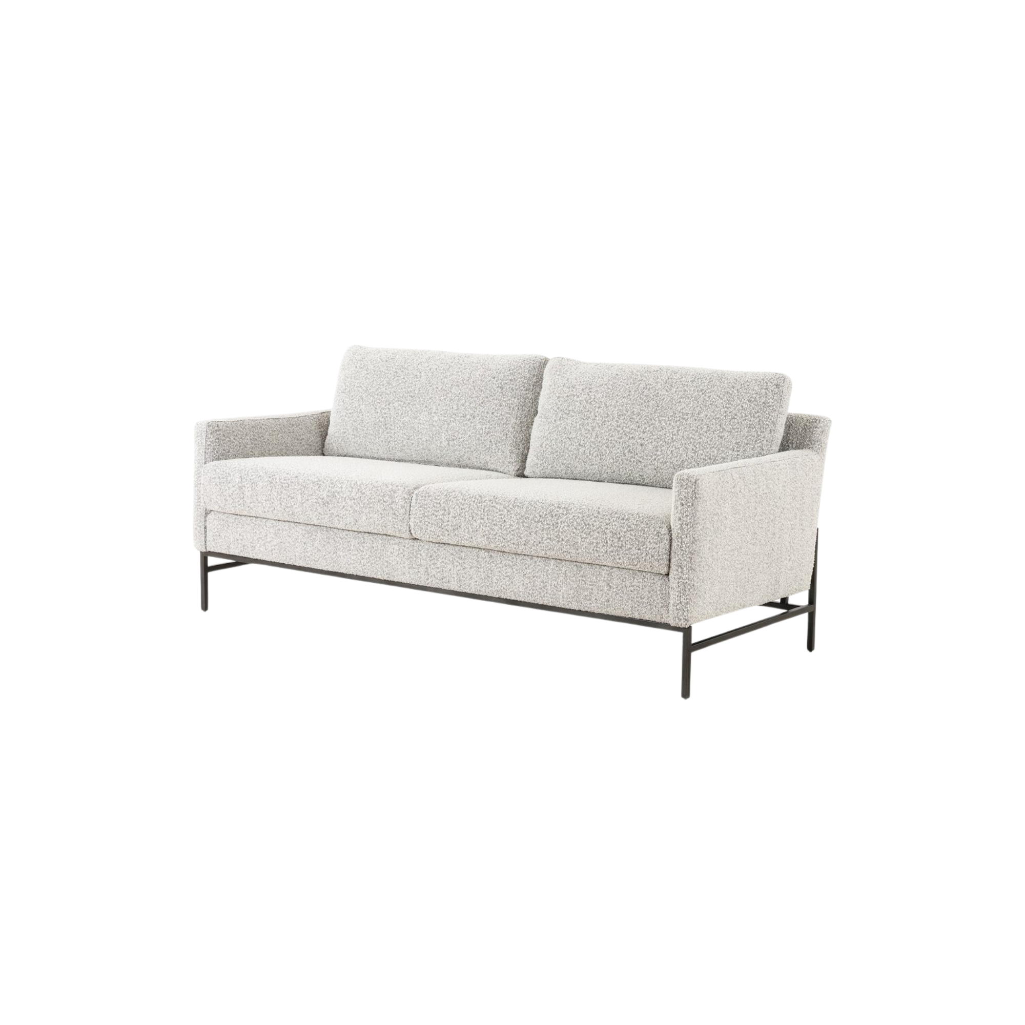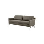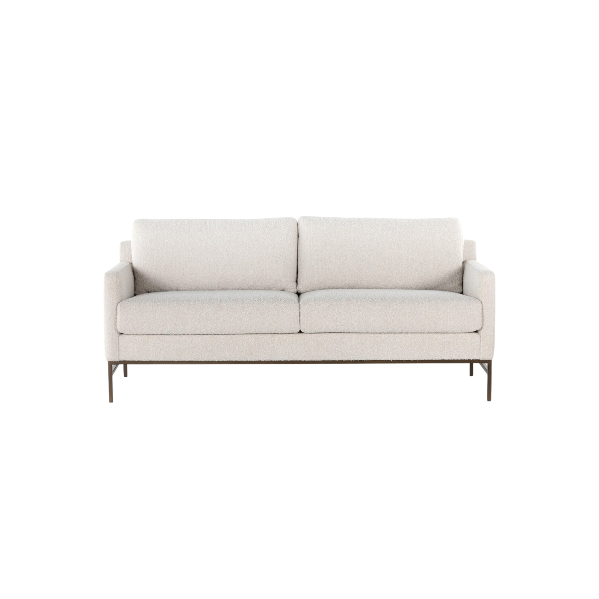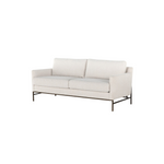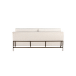 Plush and modern-minded. Atop an airy, bronze-finished iron base, lush upholstery or top grain leather feature clean, angular track arms and comfy cushioning, for the best of both worlds.