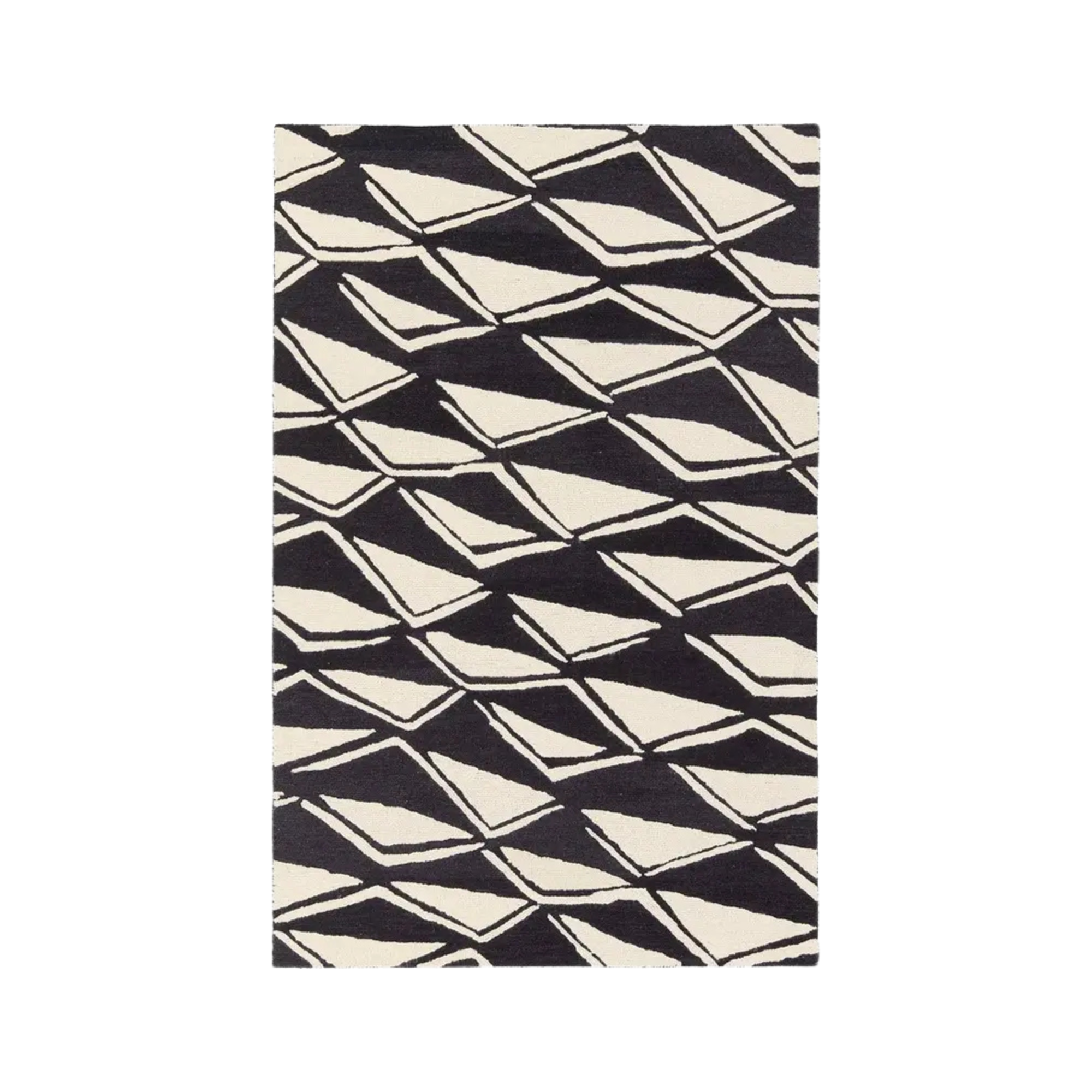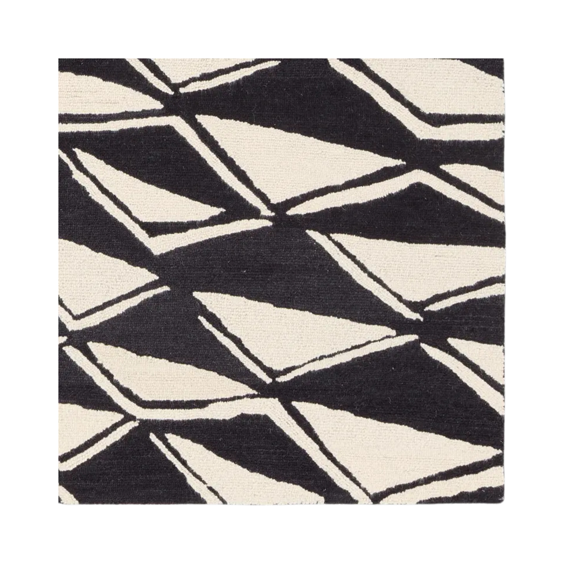 The striking focal point your room is missing. The Vera by Nikki Chu features alternating black and ivory triangles to create a simple yet dramatic modern geometric design. Crafted and loop-tufted by hand, this low-maintenance rug won't stain or snag easily, making it the perfect fit for any home.