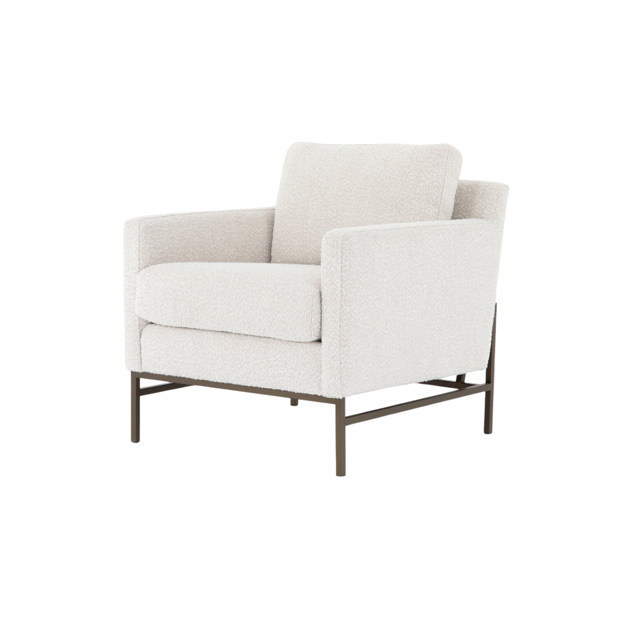 Plush and modern-minded. Atop an airy, bronze-finished iron base, upholstery features clean, angular track arms and comfy cushioning, for the best of both worlds. Performance fabrics are specially created to withstand spills, stains, high traffic and wear, ensuring long-term comfort and unmatched durability.