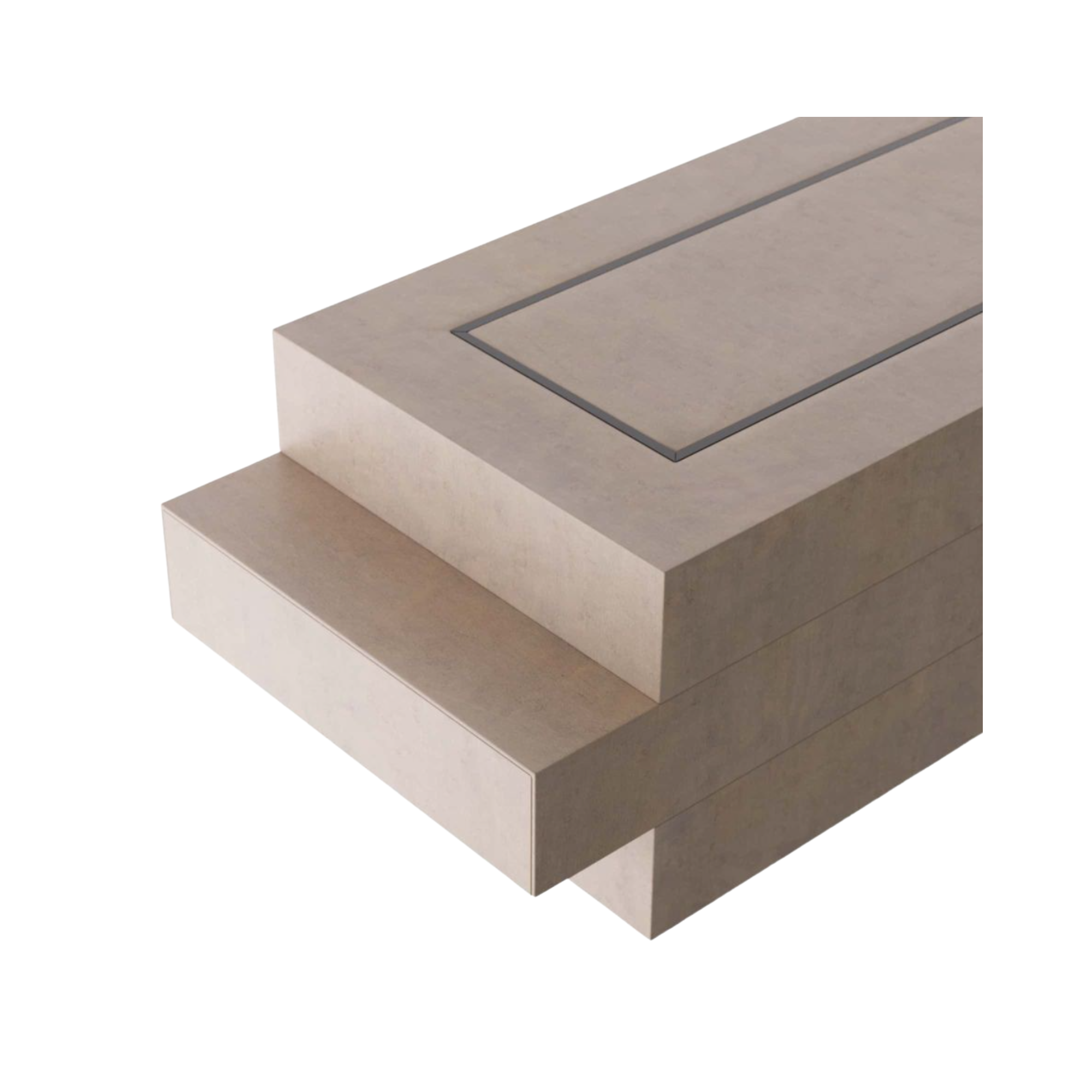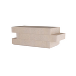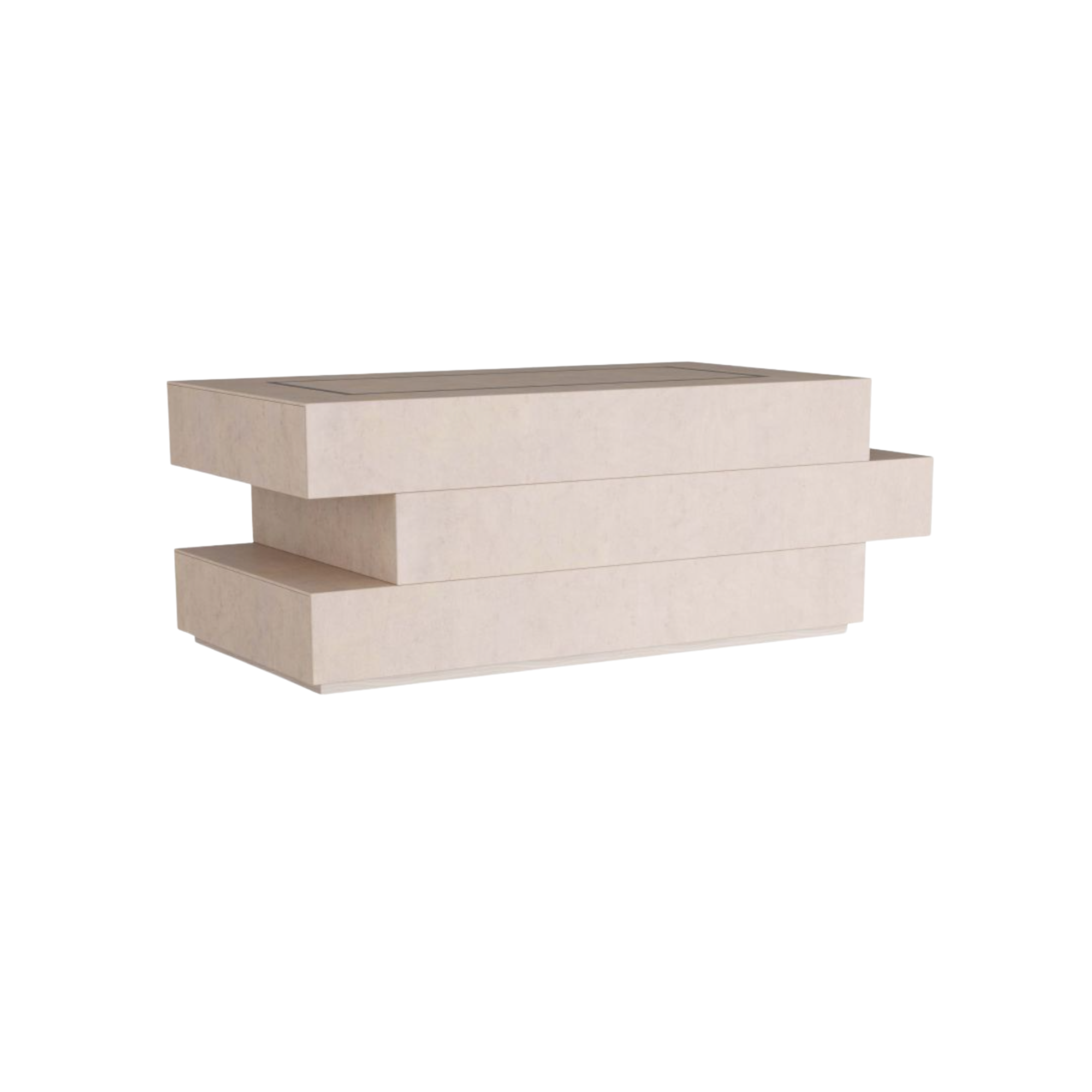 The Wilkinson Cocktail Table brings a 70s flair to your living space with its vintage-inspired lacquered finish and low-profile design. Crafted from maple veneer and accented with a bronze-iron surface inlay, this table combines elegance with modern function. Its unique stacked, offset composition conceals three hidden drawers, offering a practical storage solution. Finishes will vary.
