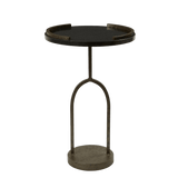 This hand-forged iron accent tables sports an inset black granite top and a wishbone-shaped base for good luck.