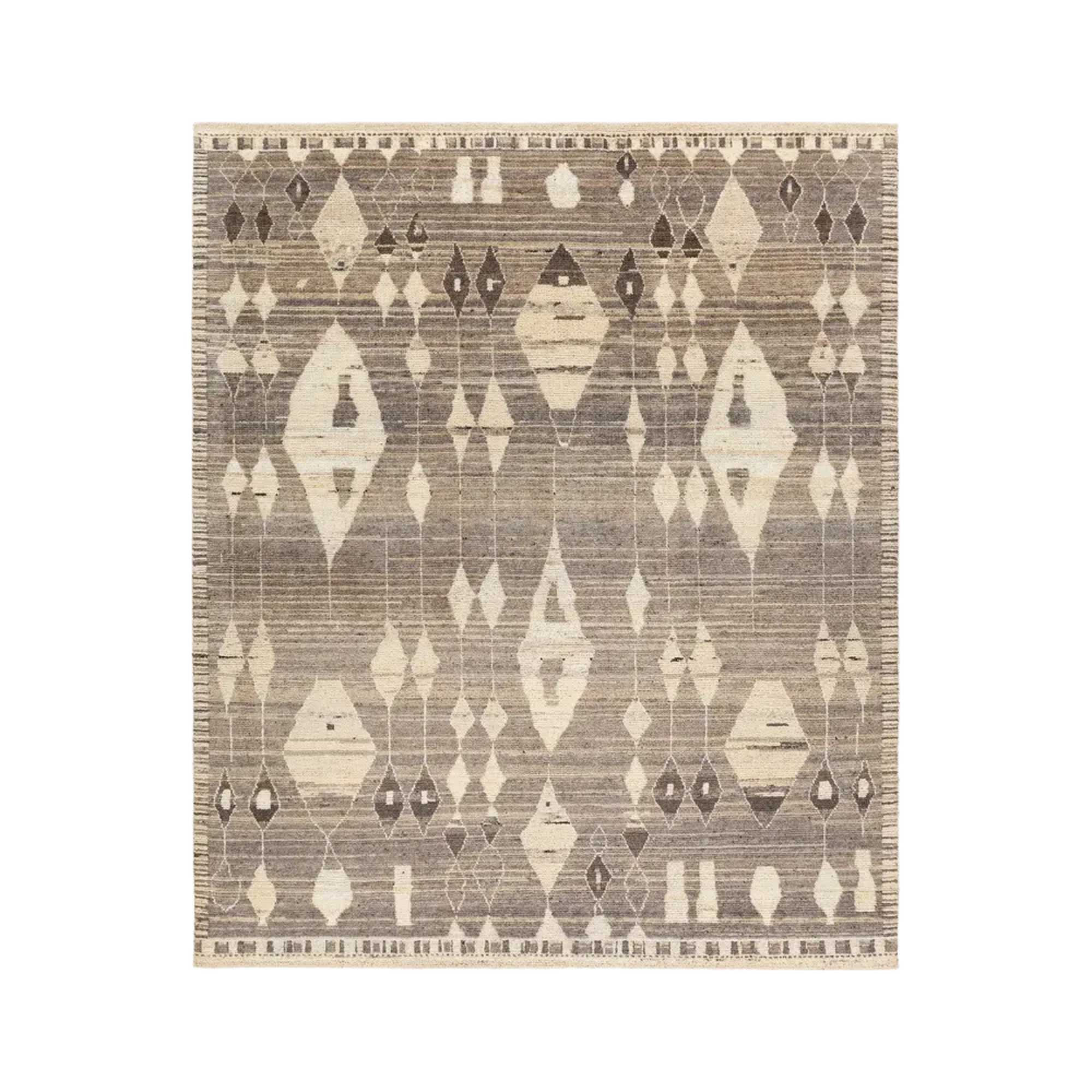 Enrich living spaces with the exotic allure of the Zaira Collection - a fusion of modern Moroccan designs and unparalleled craftsmanship. Handknotted in India with 22 knots per square inch, these rugs exude luxury and artistry. The Tonnara rug showcases an intriguing diamond pattern in gray, cream, taupe, and tan hues. Short, 100% wool pile is naturally stain resistant and can withstand high-traffic areas such as living rooms, halls, foyers, and playrooms.