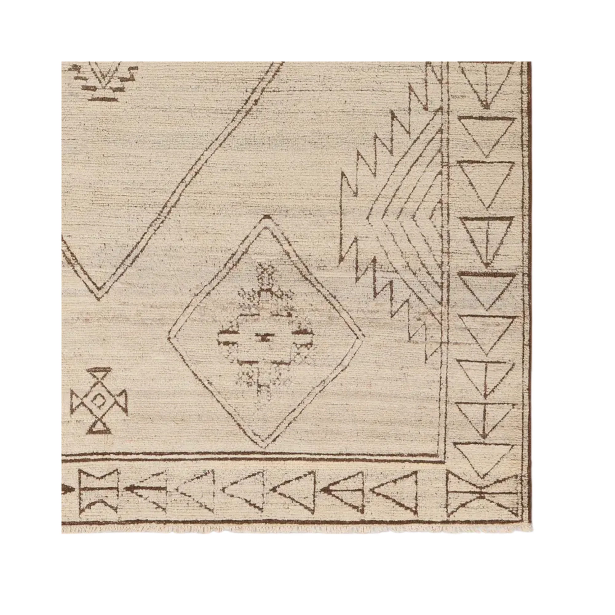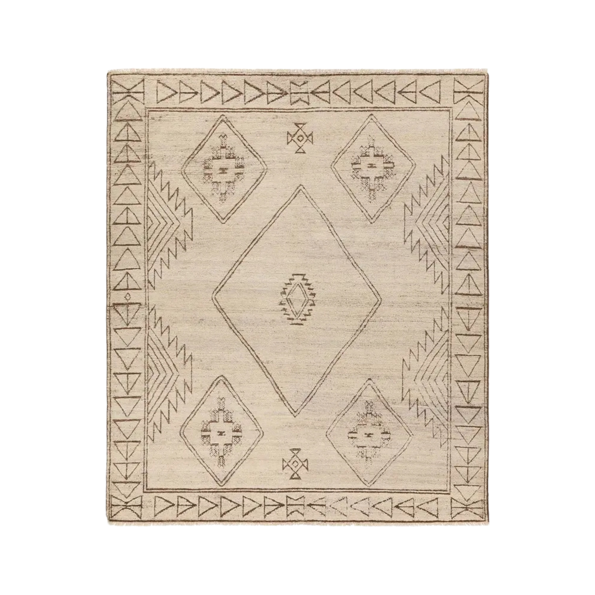 Envelop living spaces in the rich heritage of tribal artistry with the Zayda by Heja Home collection. These handknotted rugs, expertly crafted in India using 100% wool, exude a mesmerizing blend of tribal charm and timeless geometric elegance. The Elvendria design features an open medallion design in a tan and taupe colorway. Ethically created, this rug is certified by both Nest and RugMark.